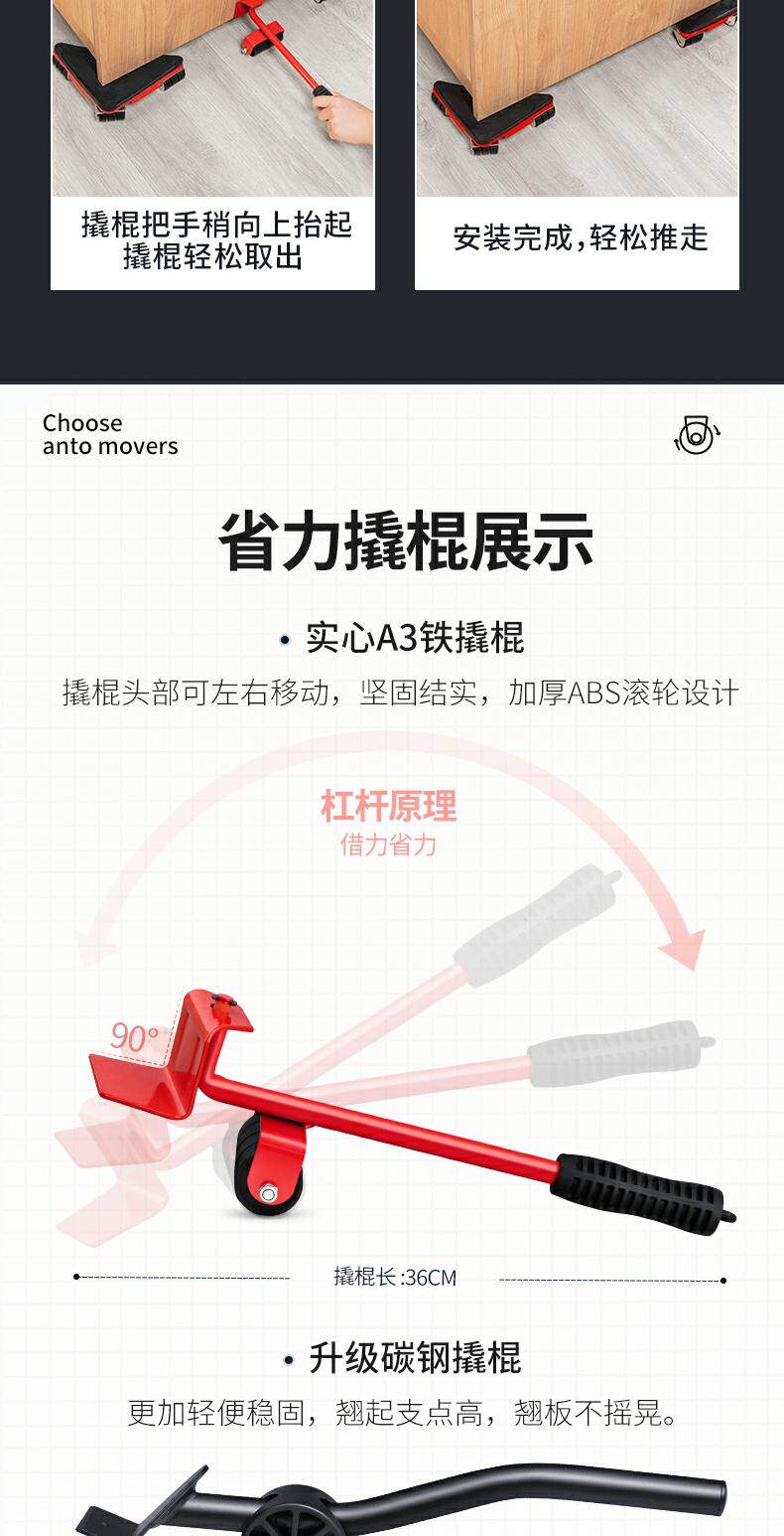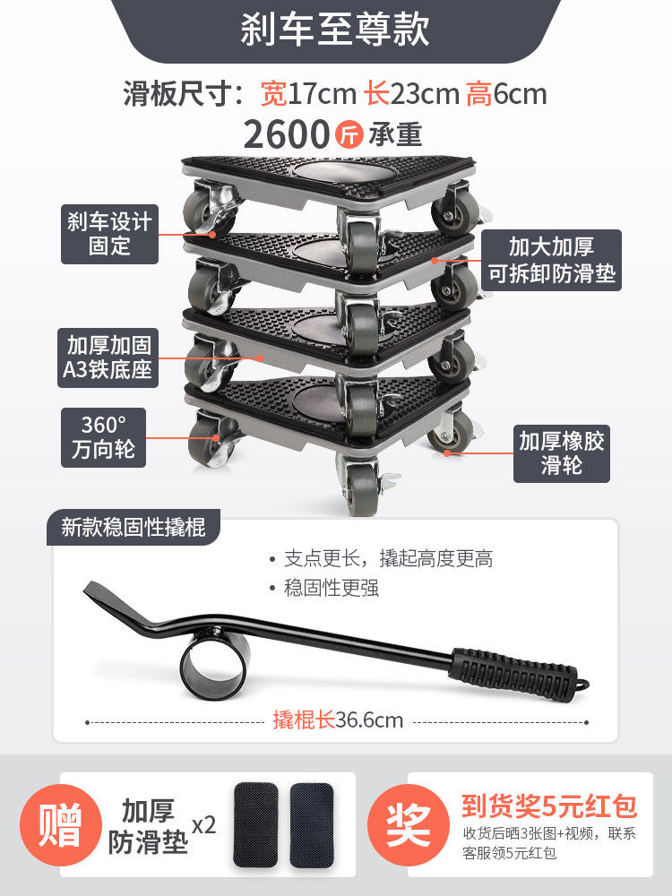 Перемещение тяжелого объективного артефакта Перемещение универсальной колесной мебели колес многофункциональное холодильник инструмент Мобильный шкив для перемещения для дома