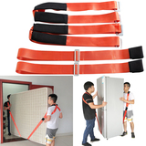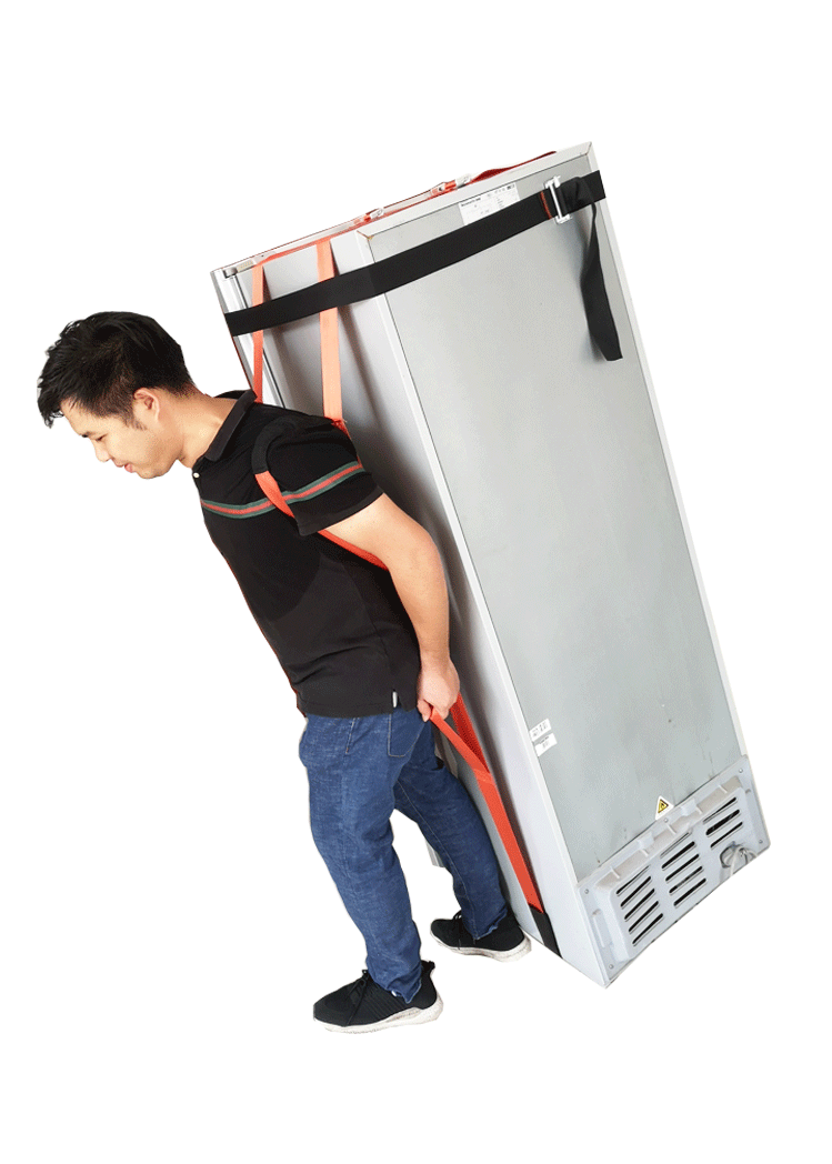 Одинокие люди движутся мебелью, бог, спасающий ремень обработки силы, чтобы переместить кондиционер с холодильником наверх и задних статей назад, чтобы поднять тяжелый объект, стиральный машино