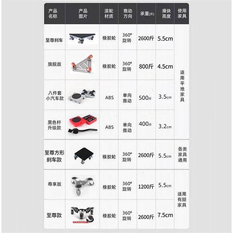Движущаяся мебель движущаяся шкив Универсальная база чакра, тяжелый шкаф -шкаф для кровати, холодильник, кофейный столик для кофейного столика артефакт артефакт артефакт