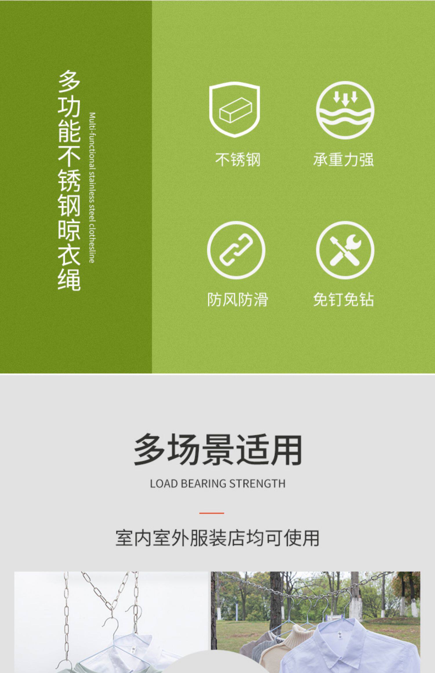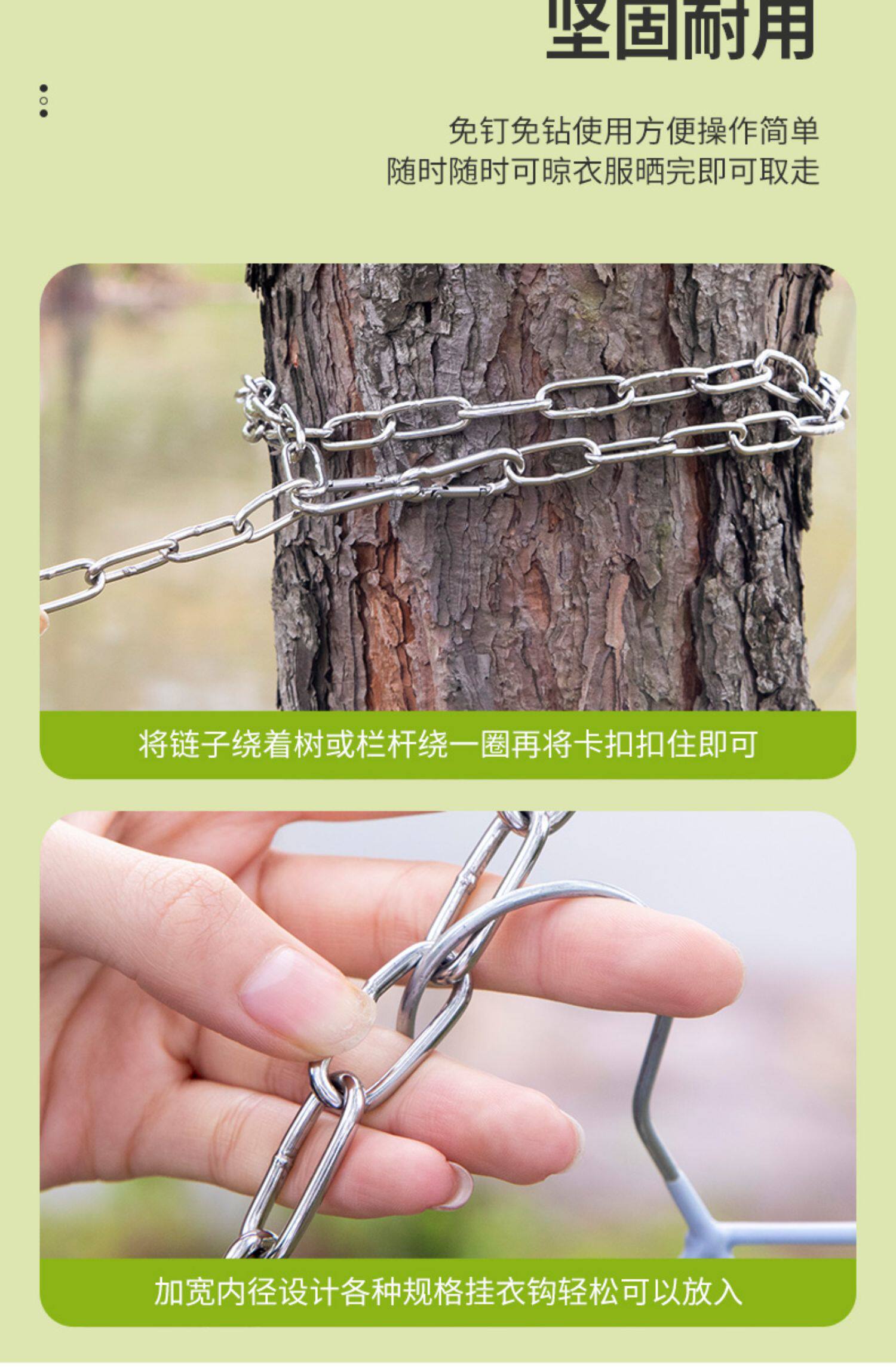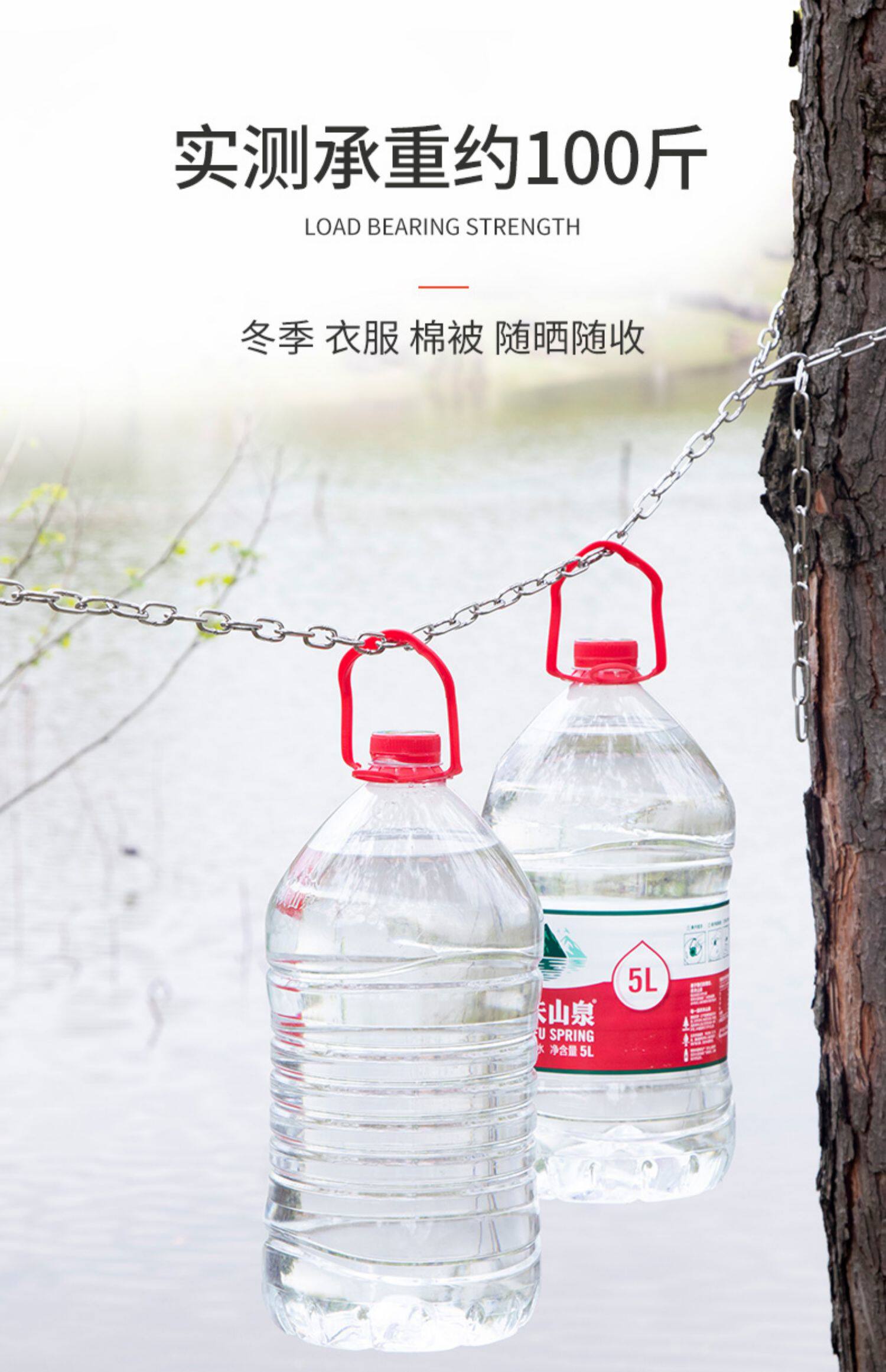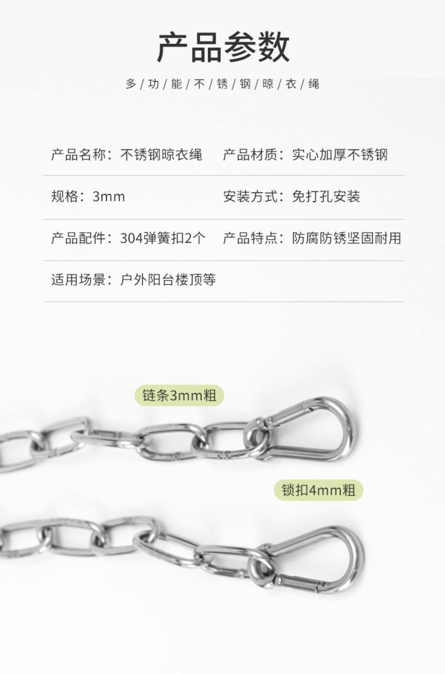 - Твердое цепь толщиной 3 мм - длиной 8 метров + 2 эластичные пряжки [304 Материал]