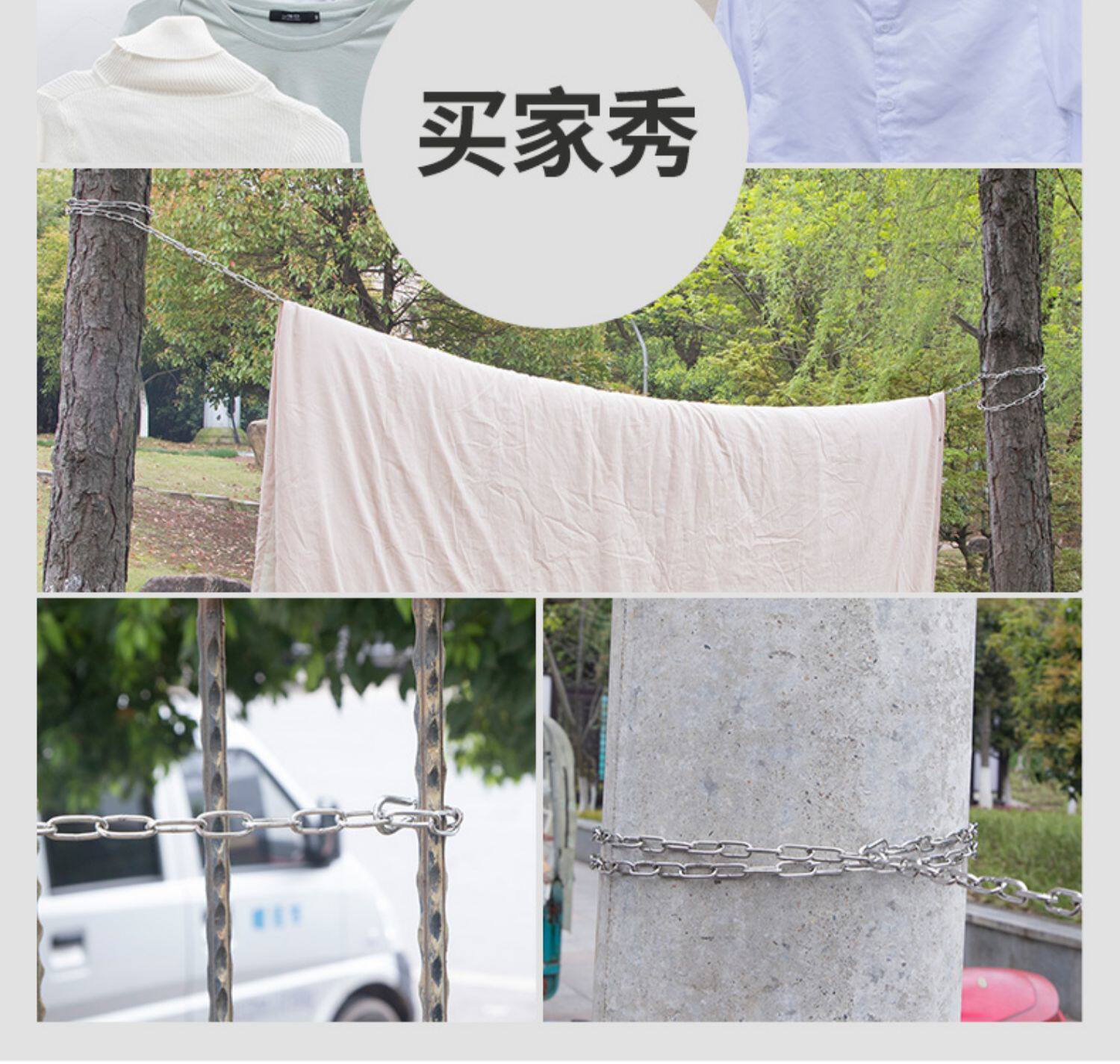 - Твердое цепь толщиной 3 мм - длиной 7 метров + 2 эластичные пряжки [304 Материал]