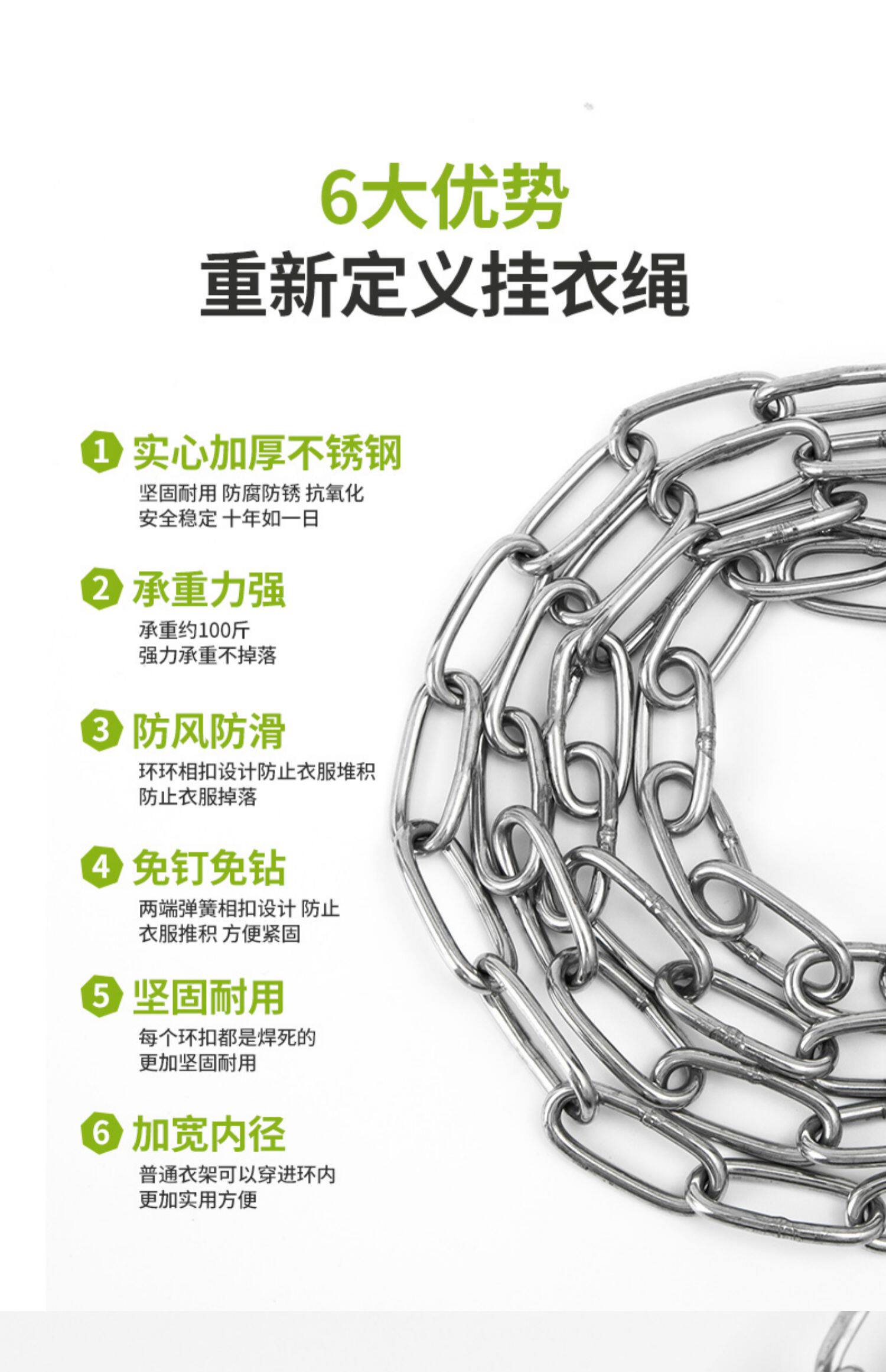 - Твердое цепь толщиной 3 мм - длиной 6 метров + 2 эластичные пряжки [304 Материал]