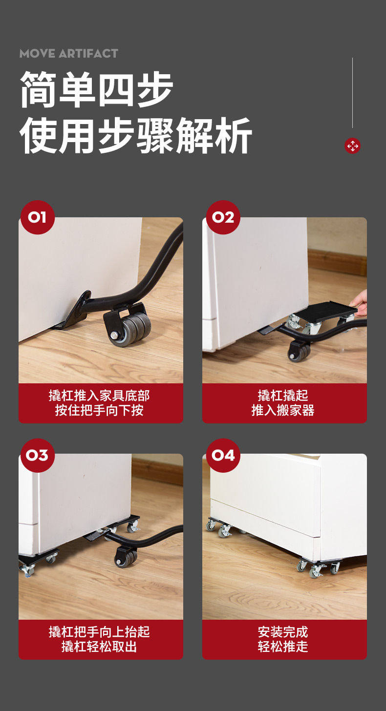 Перемещение тяжелых предметов, артефакт, перемещение универсального колеса, новый пятиколесный универсальный шкив для перемещения крупных предметов мебели для кроватей, чтобы сэкономить усилия.