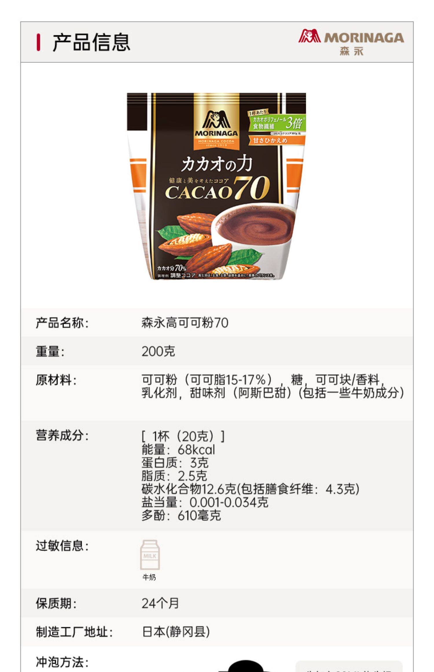Япония импортировал молоко Морийо Импорт какао порошок высокий напиток с высоким какао какао 70 горячий шоколад порошковый порошок пищевые волокно