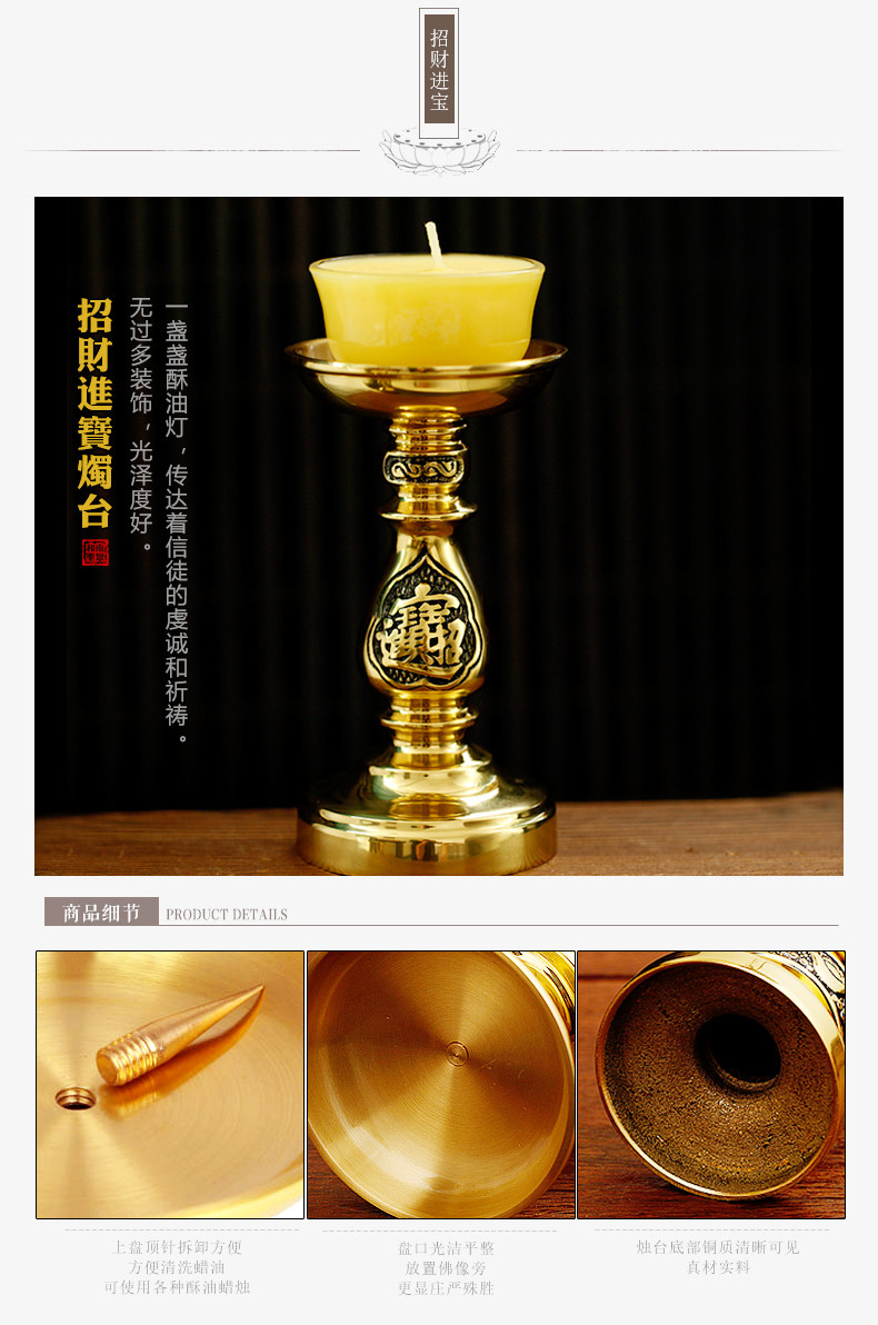 Буддийский храм чистая медная хрустящая база база для набора набора в Baowenwu Cai Cai Guan Общественное страхование Jiaxian, чтобы признаться в Будде яркий свет подсвечник