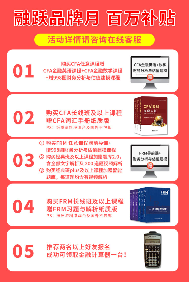 - CFA Долгосрочный класс + раздаточный материал + Q & A + Smart Mapter Bank (свяжитесь с уровнем обслуживания клиентов).