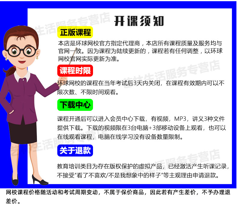 | Тип: | Базовый класс (изысканный класс лекций + банк вопросов), Беззаботный класс (учебник класс лекций + класс упражнений + банк вопросов + загрузка раздаточных материалов) скачать), Беззаботный план обучения (рекомендация по производству затрат, учебники), VIP -репутация класса (три этапа базового укрепления спринта, пять основных сдвигов), Высококачественный класс подписания [Пять гарантий подготовки к экзаменам, предоставленные учебники], Высококачественный беззаботный двойной класс (экзамен, повторный изучение один раз))), Банк вопросов |
