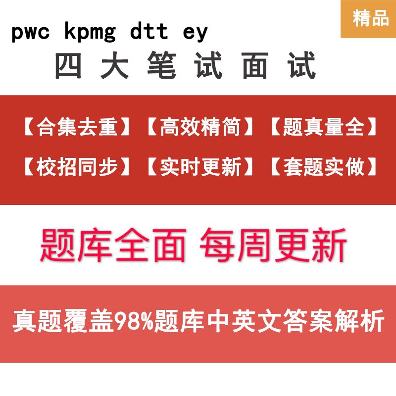 | Тип: | Deloitte Письменное тестовое банков, PWC GBA письменный тест, Письменное тестовое банк KPMG, EY GBA письменный тест, Четыре письменных тестовых банка, Компенсируйте разницу, Интервью Deloitte + письменный тест, Puhua Интервью + письменный экзамен, Kpmg интервью + письменный экзамен, Интервью EY + письменный тест, Четыре интервью + письменные тесты, Deloitte интервью, Эй интервью, Пухуа интервью, KPMG Интервью, Четыре интервью |