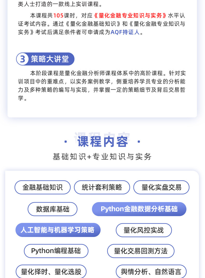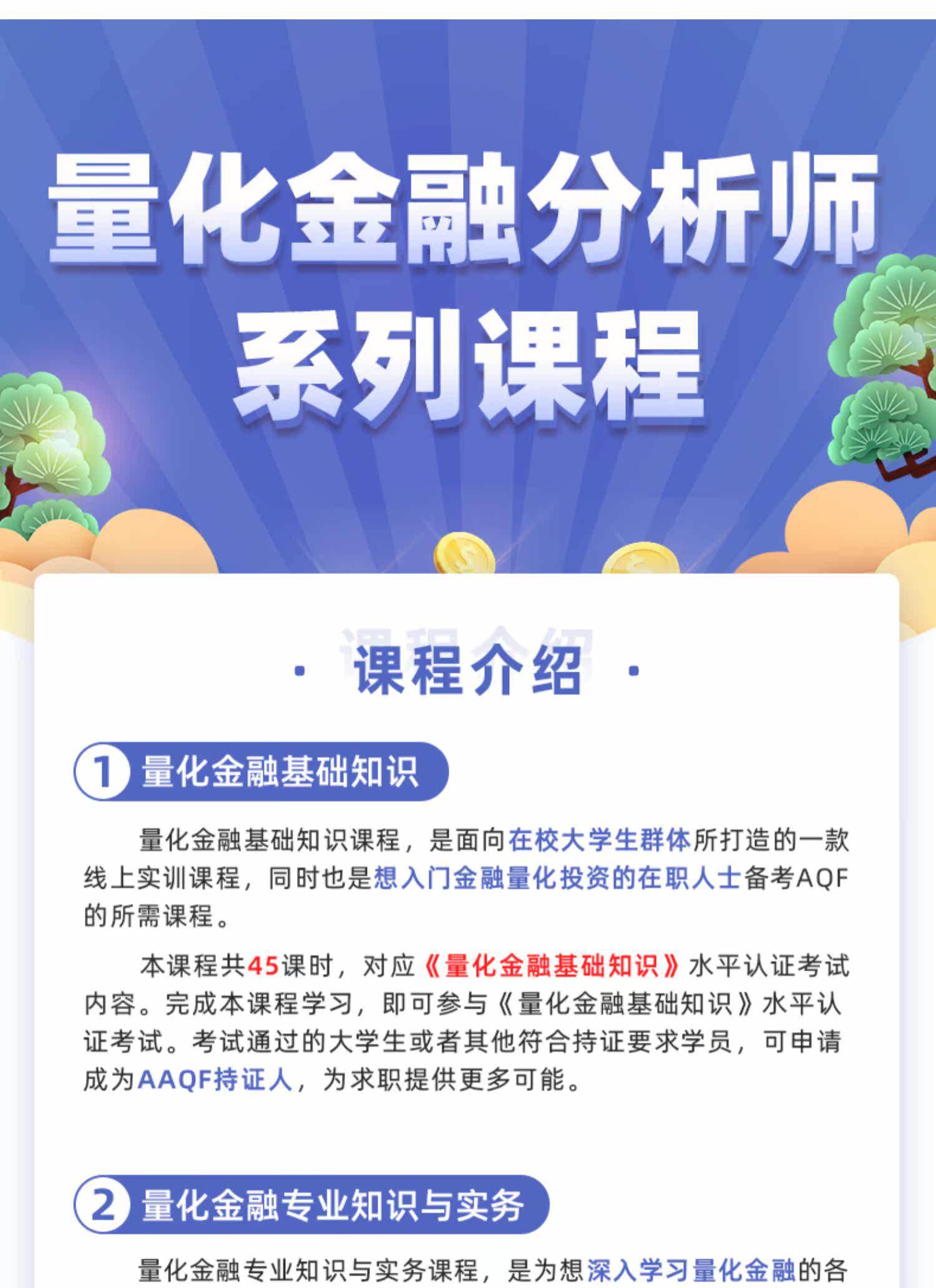 | Тип: | Количественный финансовый аналитик AQF Программа обучения (A+B), Основные знания количественных финансов (а), Количественный опыт и практику количественного финансирования (B), Количественная торговая стратегия лекционная зал (C), Проект обучения количественного финансового аналитика+лекционная стратегическая стратегическая стратегия (A+B+C) |