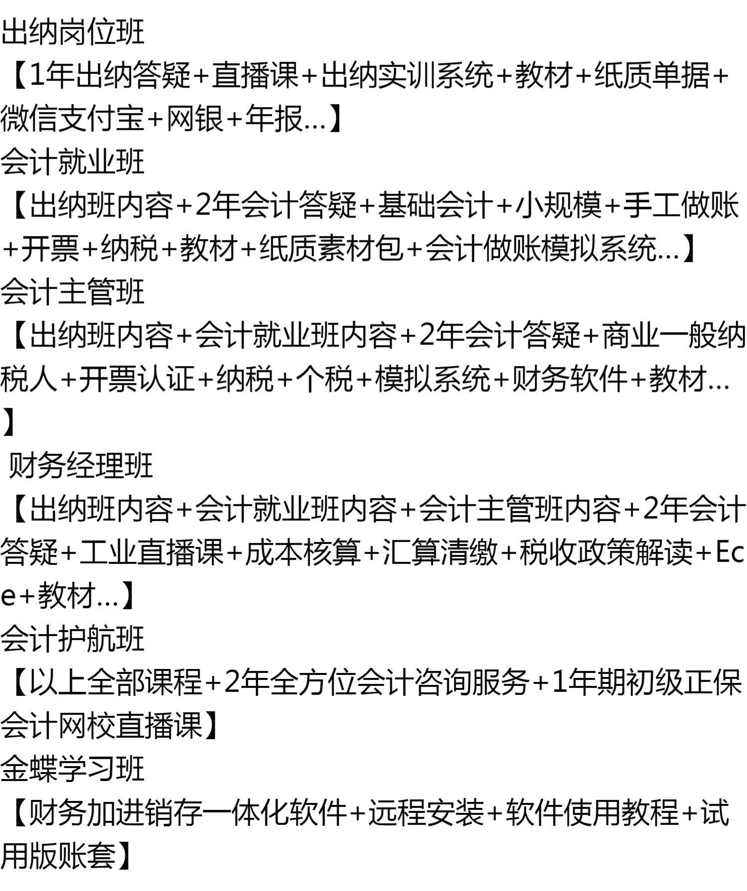 | Тип: | Класс должности кассира [1 год вопросов и ответов кассира + живое занятие + система обучения кассира + учебные материалы + бумажные документы + WeChat Alipay + онлайн-банкинг + годовой отчет...], Курс по бухгалтерскому учету [содержание класса кассира + 2 года бухгалтерского учета, вопросы и ответы + базовый учет + малый масштаб + ручной учет + выставление счетов + уплата налогов + учебные материалы + пакет бумажных материалов + система моделирования бухгалтерского учета, Класс супервайзера по бухгалтерскому учету [Содержимое класса кассира + Содержание курса бухгалтерского учета + 2 года бухгалтерского учета, вопросы и ответы + Коммерческий налогоплательщик + Сертификация выставления счетов + Уплата налогов + Индивидуальный налог + Система моделирования + Финансовое программное обеспечение, Курс финансового менеджера [Содержание курса кассира + Содержание курса бухгалтерского учета + Содержание курса супервайзера по бухгалтерскому учету + 2 года бухгалтерского учета, вопросы и ответы + Промышленные курсы + Учет затрат + Окончательный расчет + Налоги + Форма E, Экзаменационный полет сопровождения [Все вышеперечисленные курсы + 2 года всесторонних консультационных услуг по бухгалтерскому учету + 1 экзаменационный период для младших классов онлайн-школы бухгалтерского учета Чжэнбао в прямом эфире], Учебный класс Kingdee [Финансы плюс интегрированное программное обеспечение для покупок, продаж и инвентаризации + удаленная установка + руководство по использованию программного обеспечения + постоянное использование наборов учетных записей], Дополнительное полное офлайн-обучение [платформа офлайн-преподавателя с 20-летним опытом обеспечивает полную прямую трансляцию репетиторских курсов] |