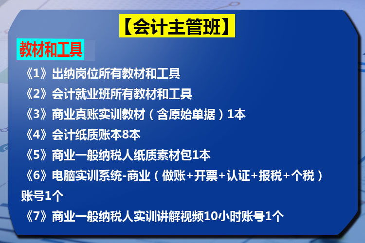- Класс супервайзера по бухгалтерскому учету [Содержимое класса кассира + Содержание курса бухгалтерского учета + 2 года бухгалтерского учета, вопросы и ответы + Коммерческий налогоплательщик + Сертификация выставления счетов + Уплата налогов + Индивидуальный налог + Система моделирования + Финансовое программное обеспечение