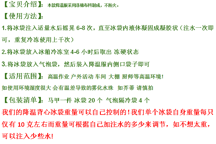 Высокая температурная анти -летняя ледовочная подушка для охлаждения одежда одежда холодный жилет Air -Кондиционирование покрытие на льду без льда охлаждение