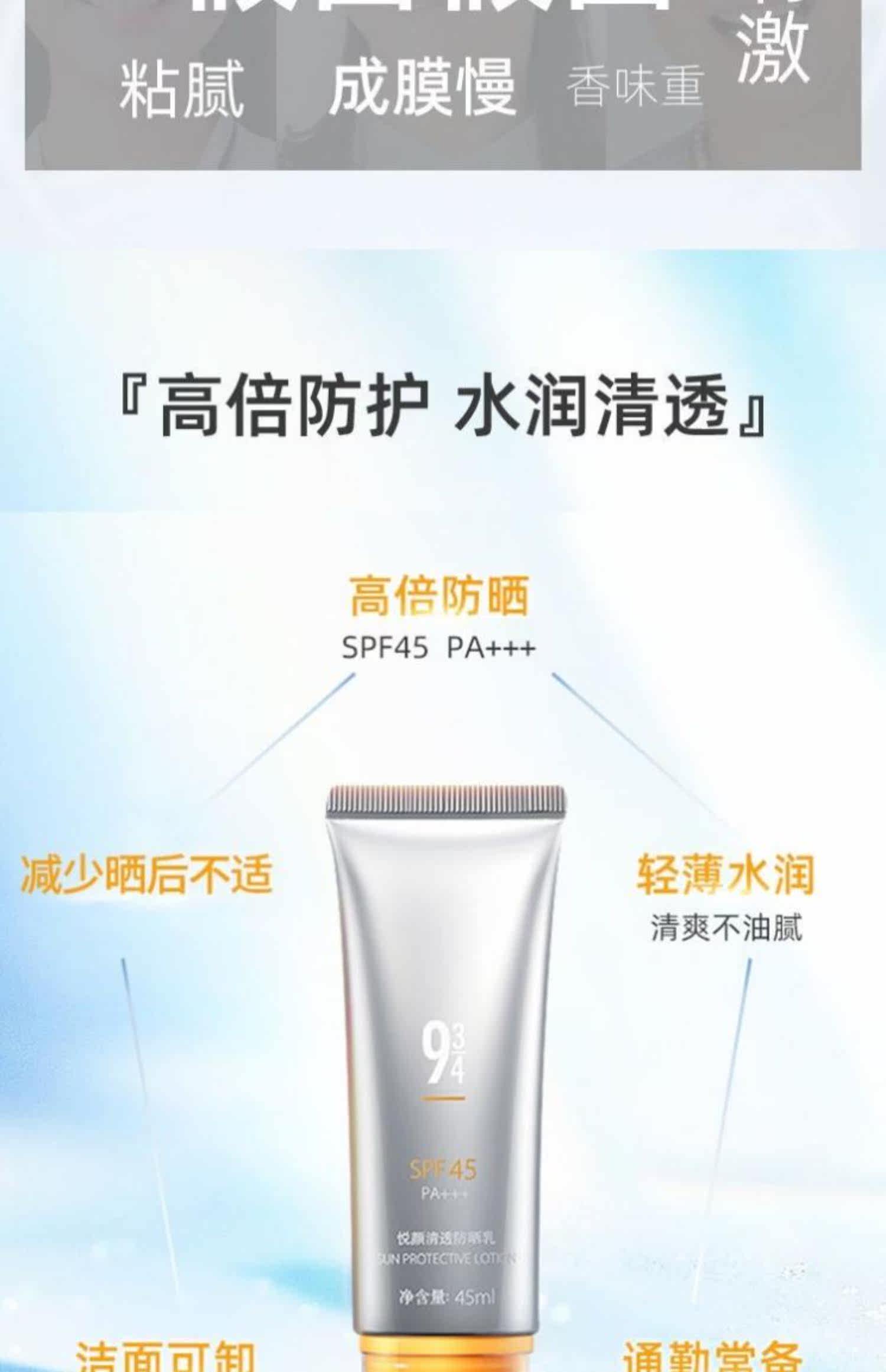 Прозрачный увлажняющий солнцезащитный крем, SPF45, 2 шт