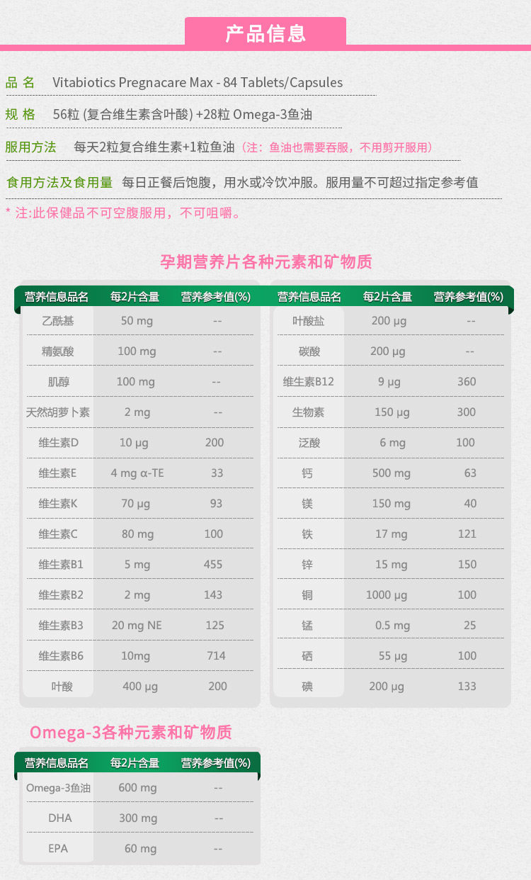 Spot British Bervotacar Max беременная женщина пищевая витамин плюс фолиевая кислота рыбь