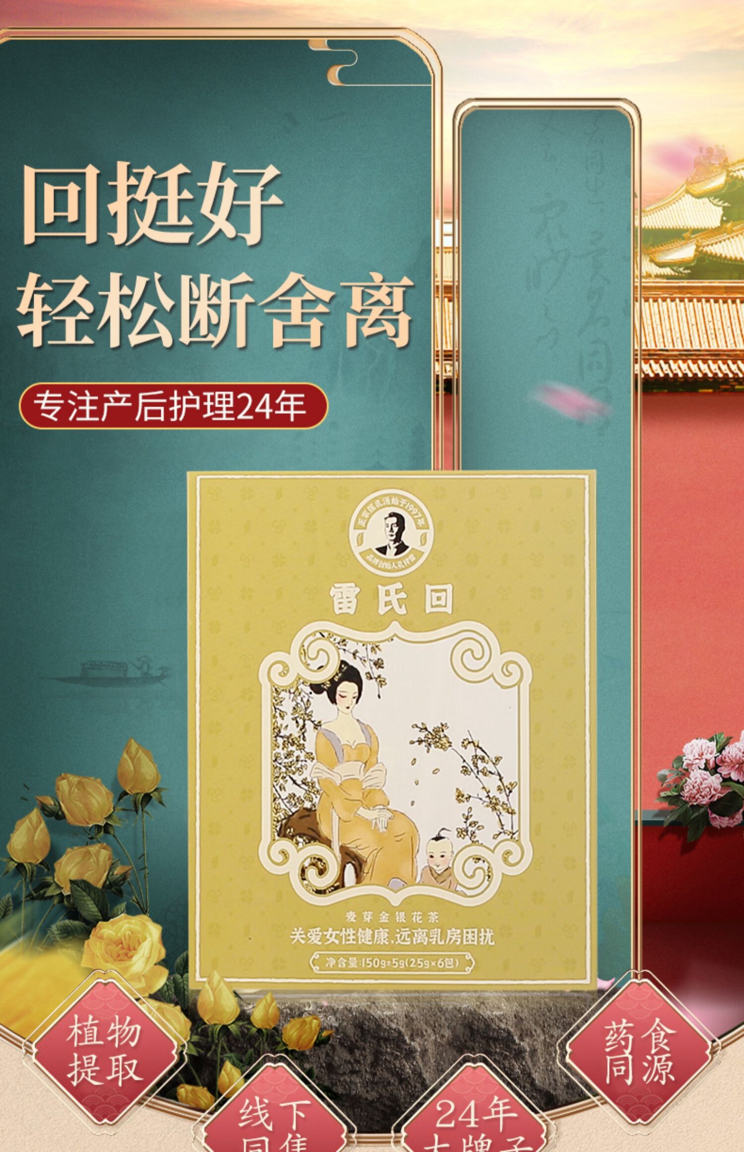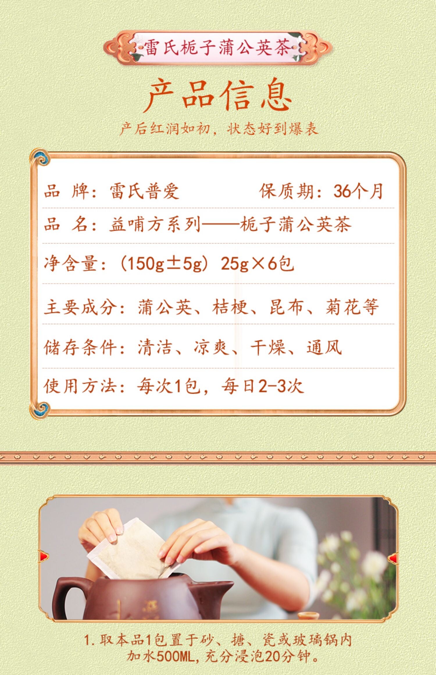 Lei's Paidi Tongzi Одувраченная одуванчика чайная грудь не подключите молоко с поднятием 1 коробки 6 пакетов и 3 коробки