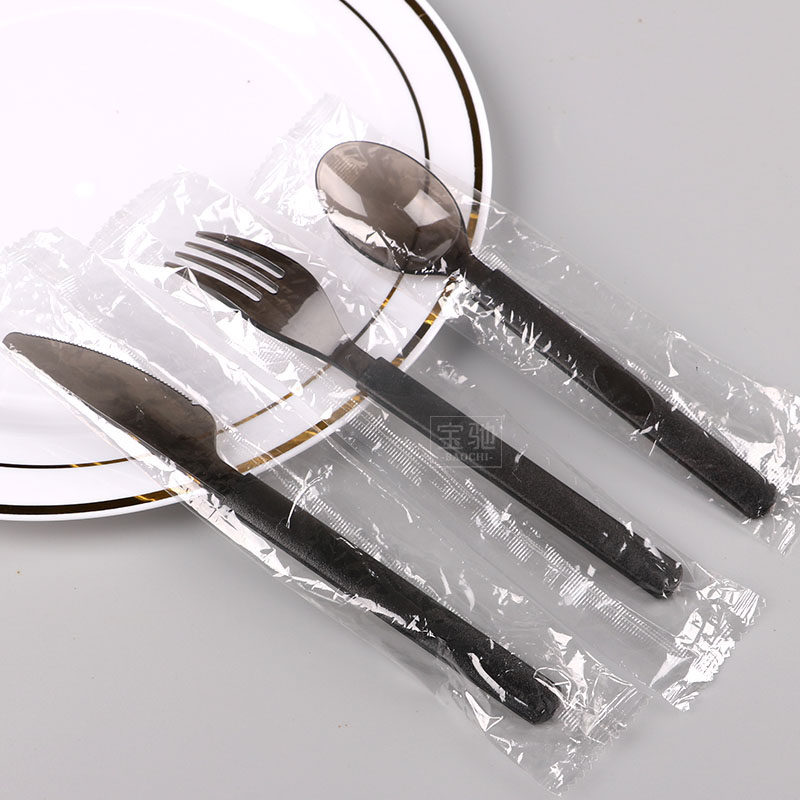 Небольшая сумка, одноразовая пластиковая упаковка, комплект, черная портативная ложка, увеличенная толщина