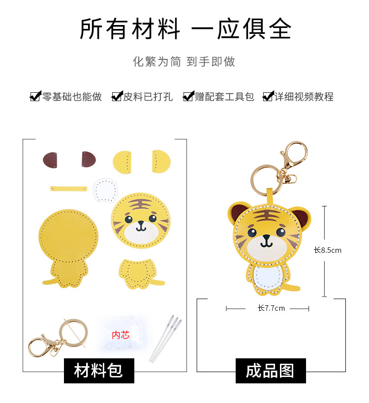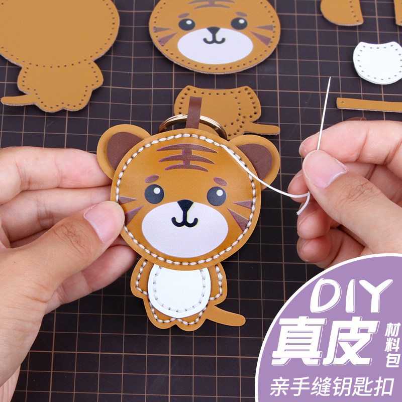 Милая подвеска ручной работы, кожаный брелок, набор материалов, DIY, тигр, делается под заказ