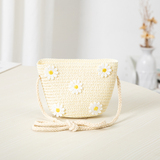 Летние дети Дети Дети девочки плеча на плечах пакет ромашка цветочный соломенная сумка для мессенджера клавиши монеты рубеж рубец мини -сумочка.