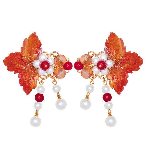Красные листья пары для волос бусины цветочные декор стабильная ручка