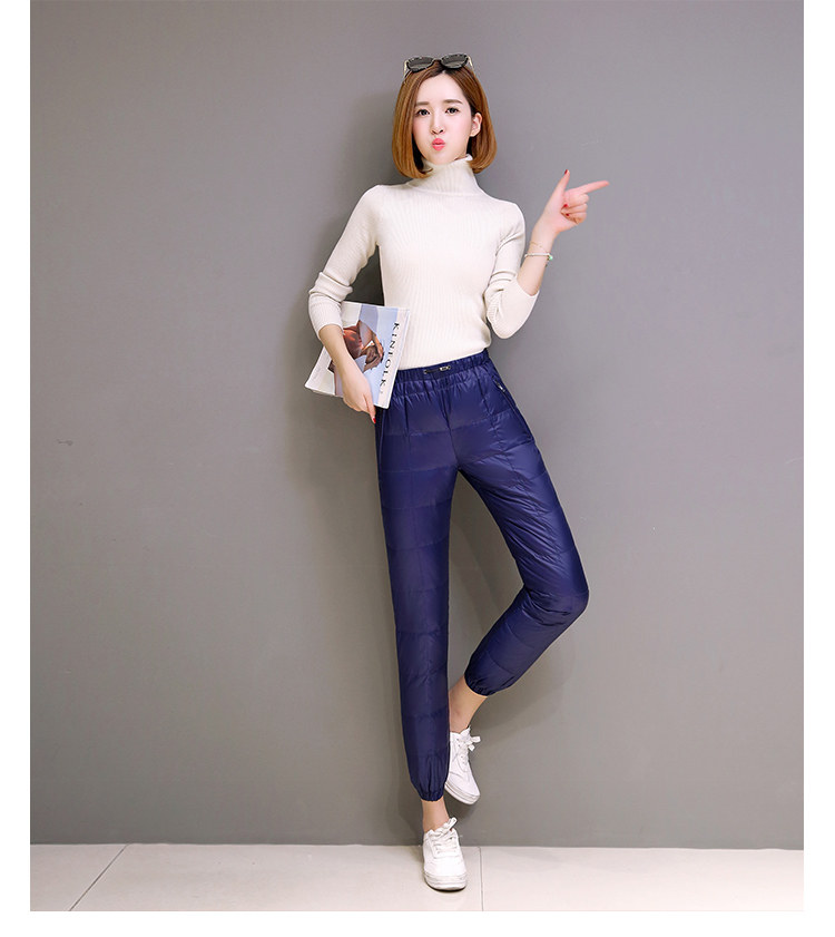 Бархатные зимние удерживающие тепло штаны с пухом, высокая талия, утиный пух, по фигуре, свободный прямой крой, большой размер