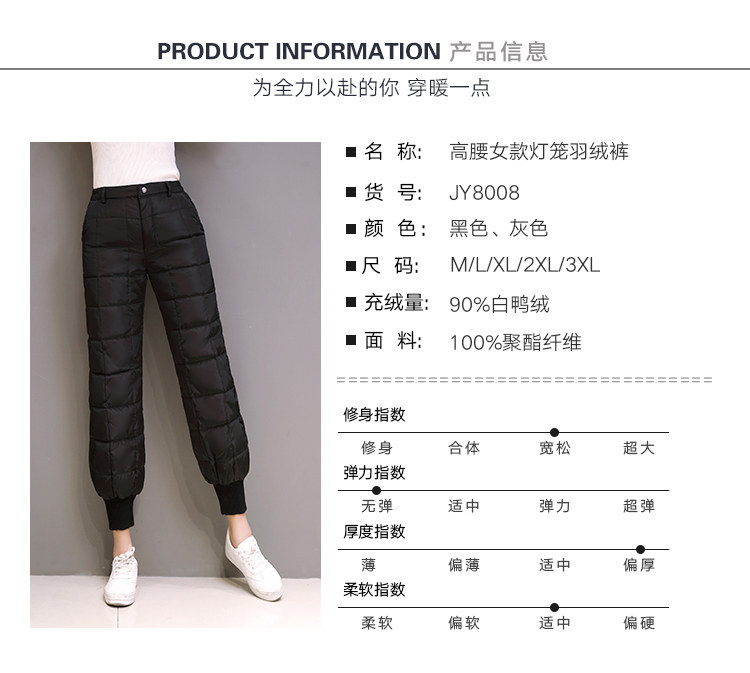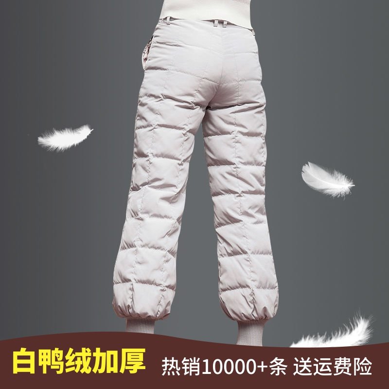 Штаны с пухом, бархатный удерживающий тепло зимний фонарь, высокая талия, утиный пух, свободный крой, облегающий крой, большой размер