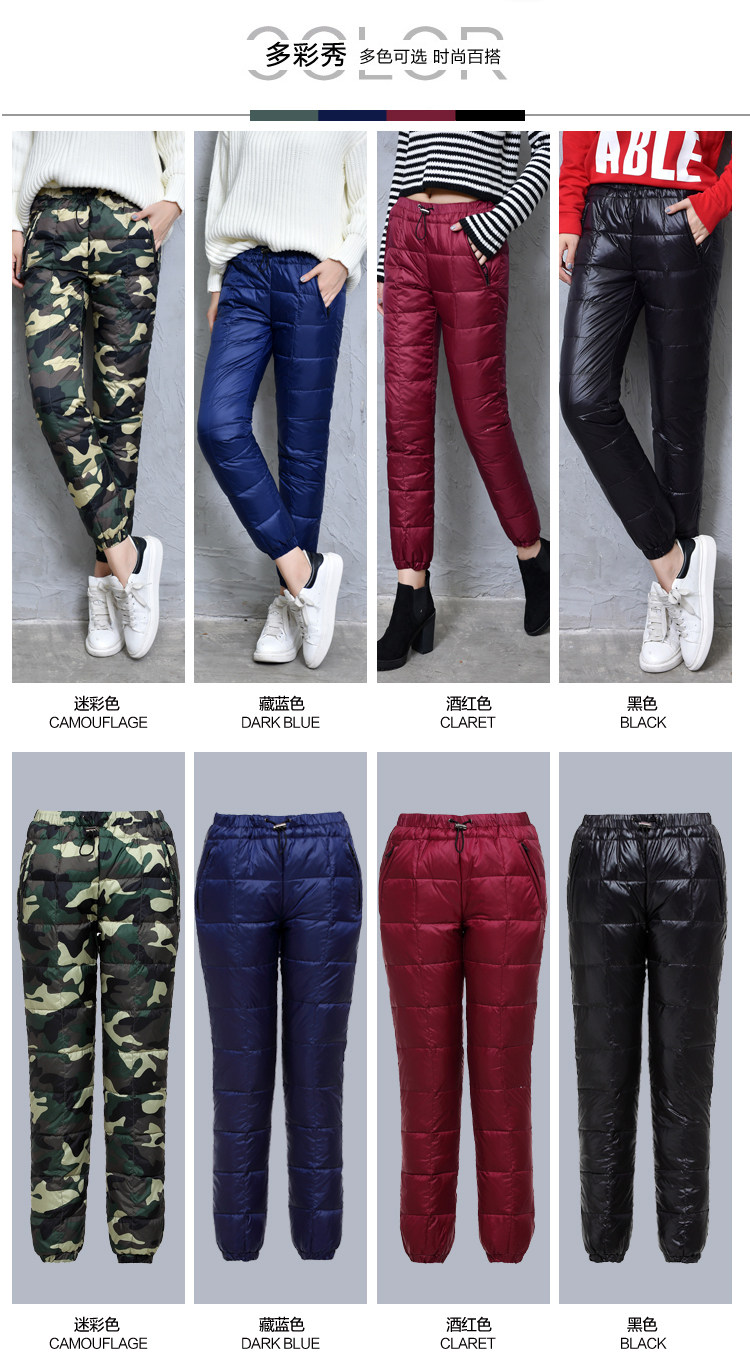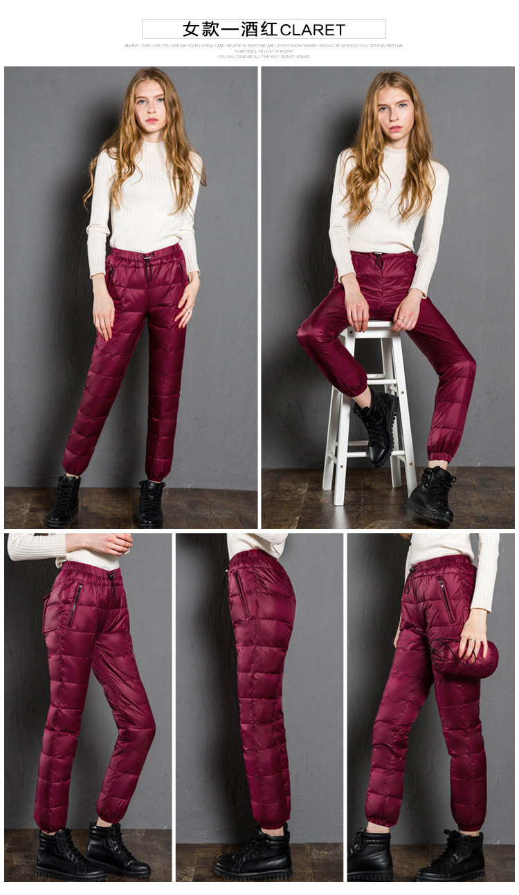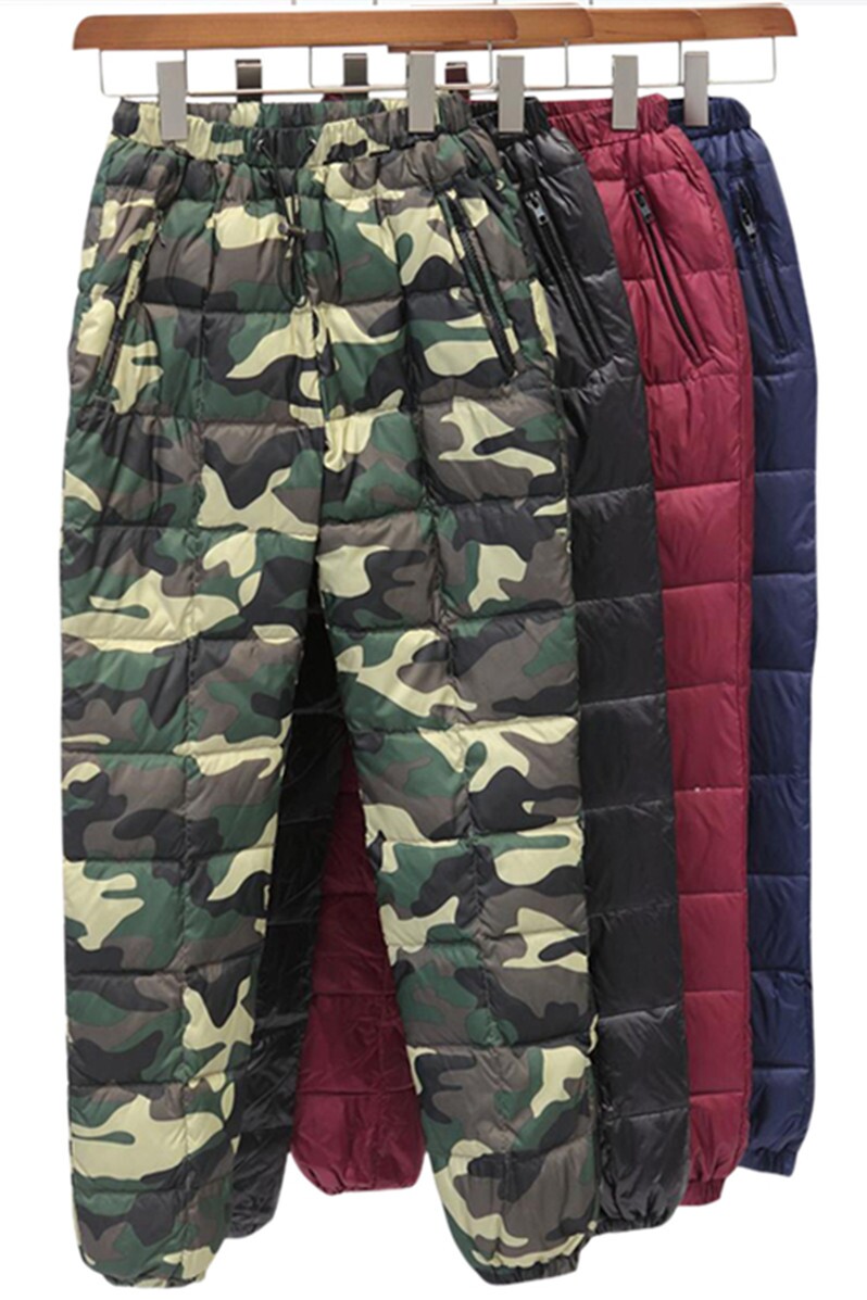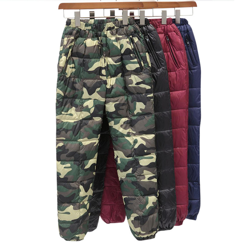 Дорожные бархатные штаны подходит для мужчин и женщин с пухом, по фигуре, большой размер, увеличенная толщина, утиный пух, высокая талия