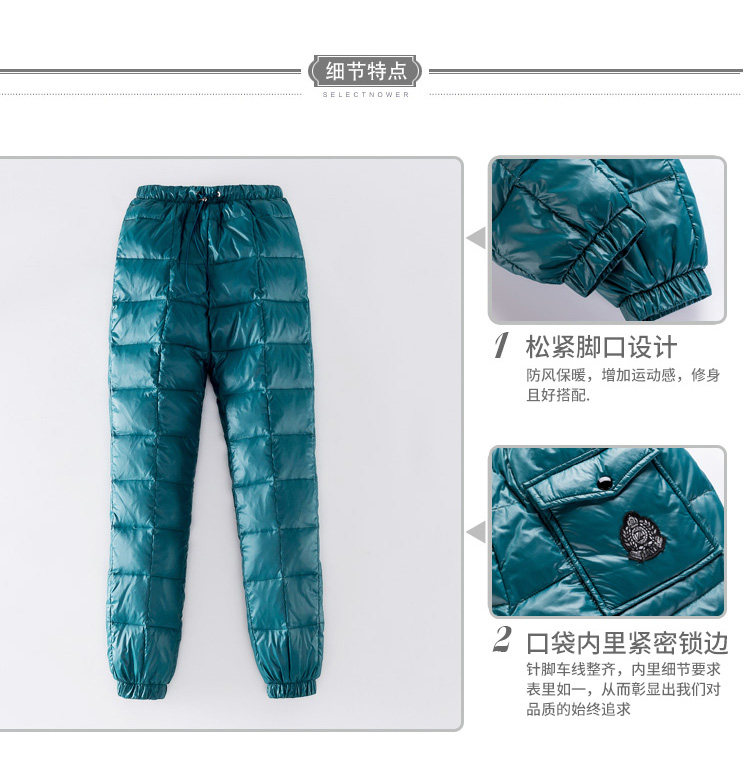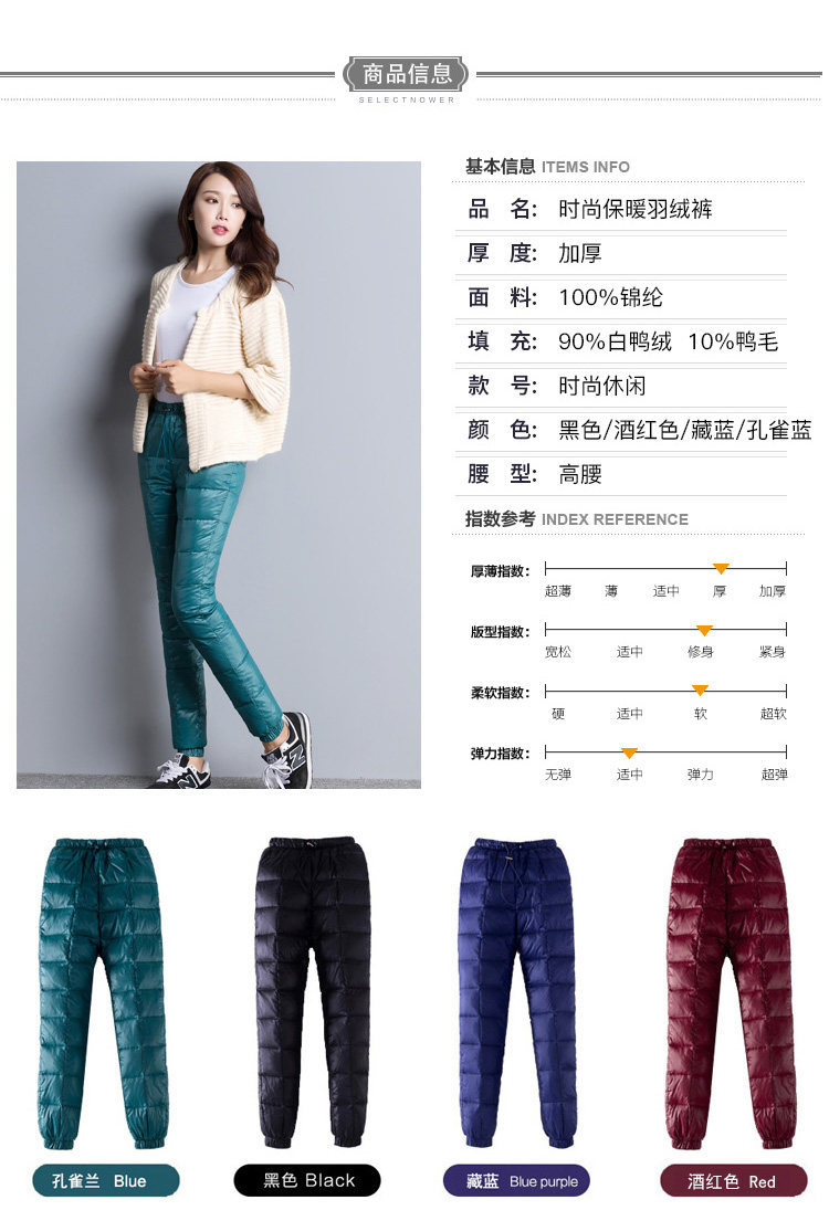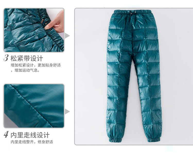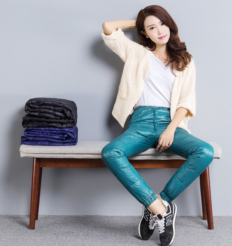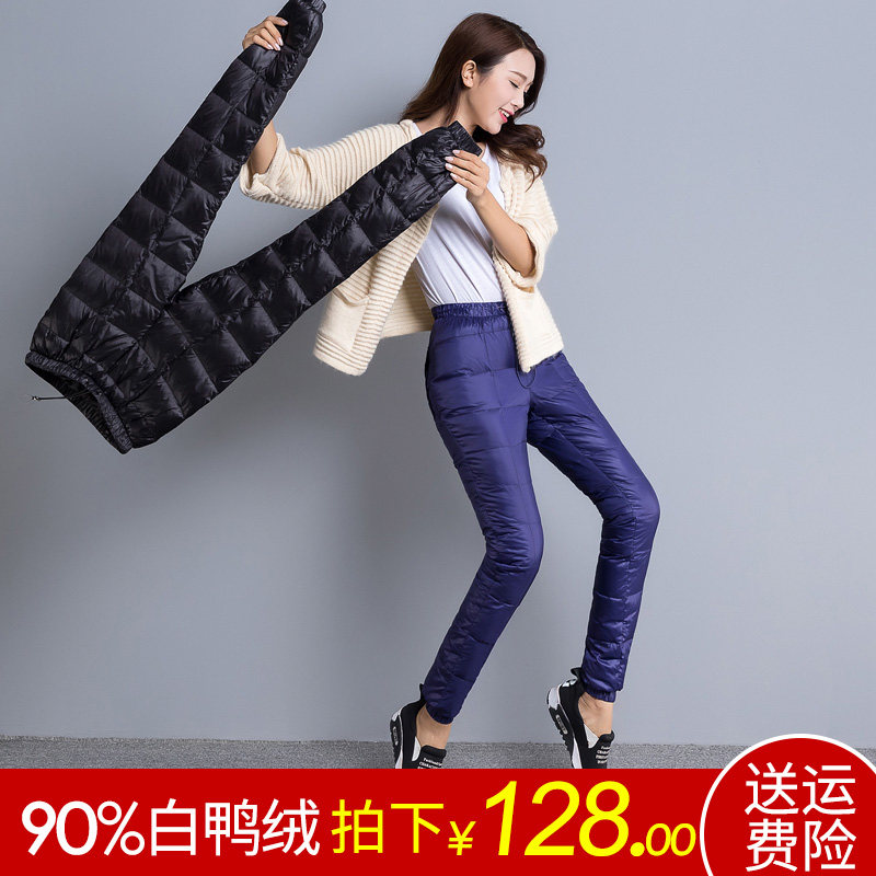 Дорожные сверхлегкие портативные бархатные штаны с пухом, облегающий крой, высокая талия, увеличенная толщина, большой размер, утиный пух, по фигуре