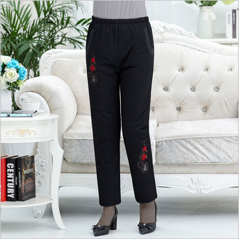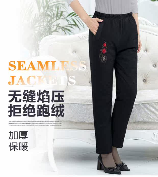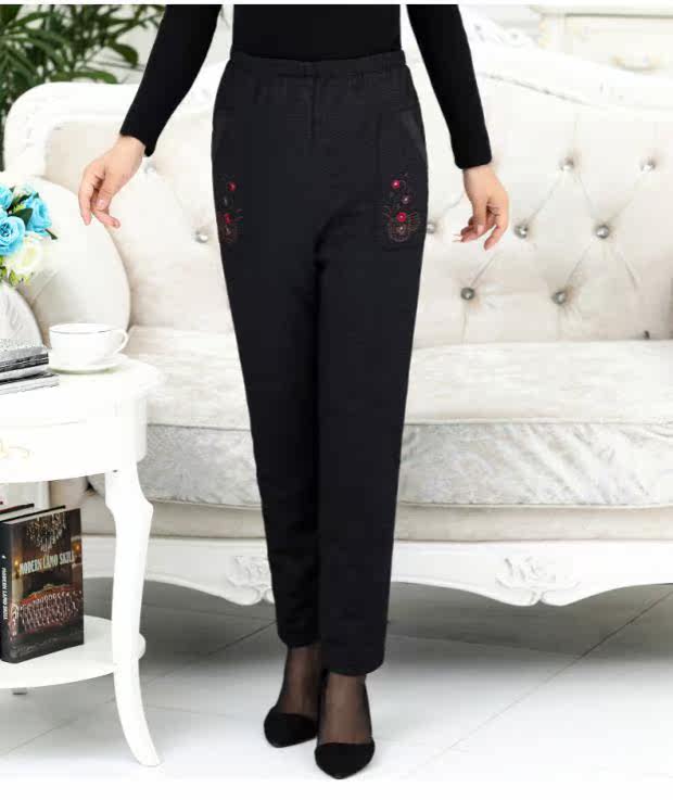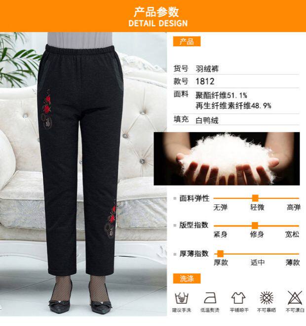 Демисезонные утепленные бархатные зимние штаны с пухом для отдыха, для среднего возраста, высокая талия, утиный пух, свободный прямой крой