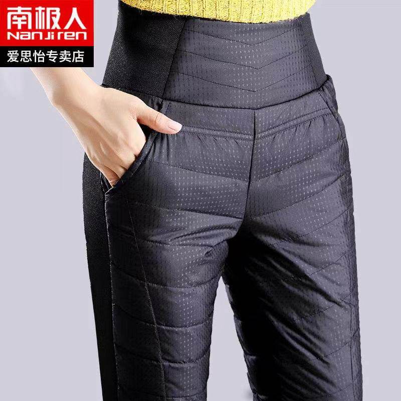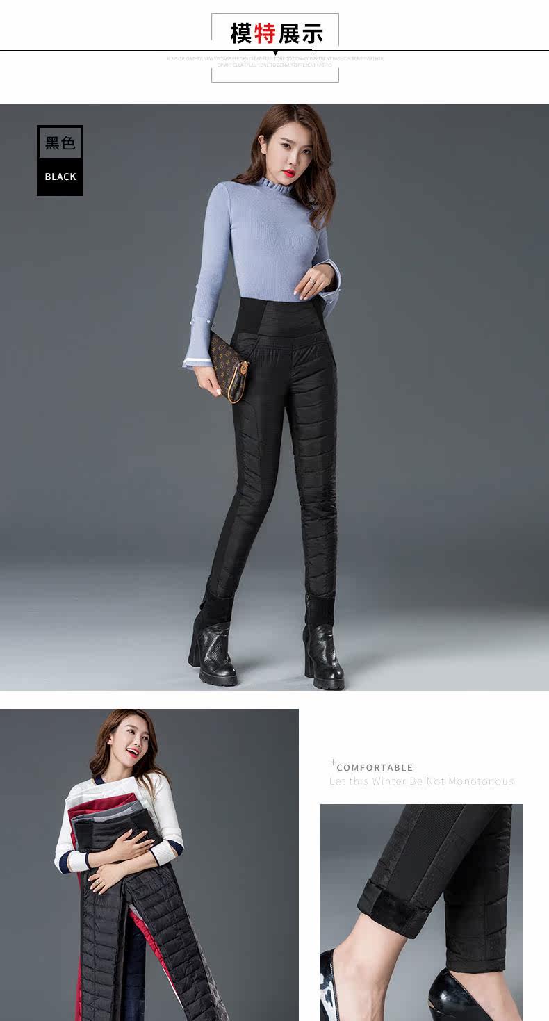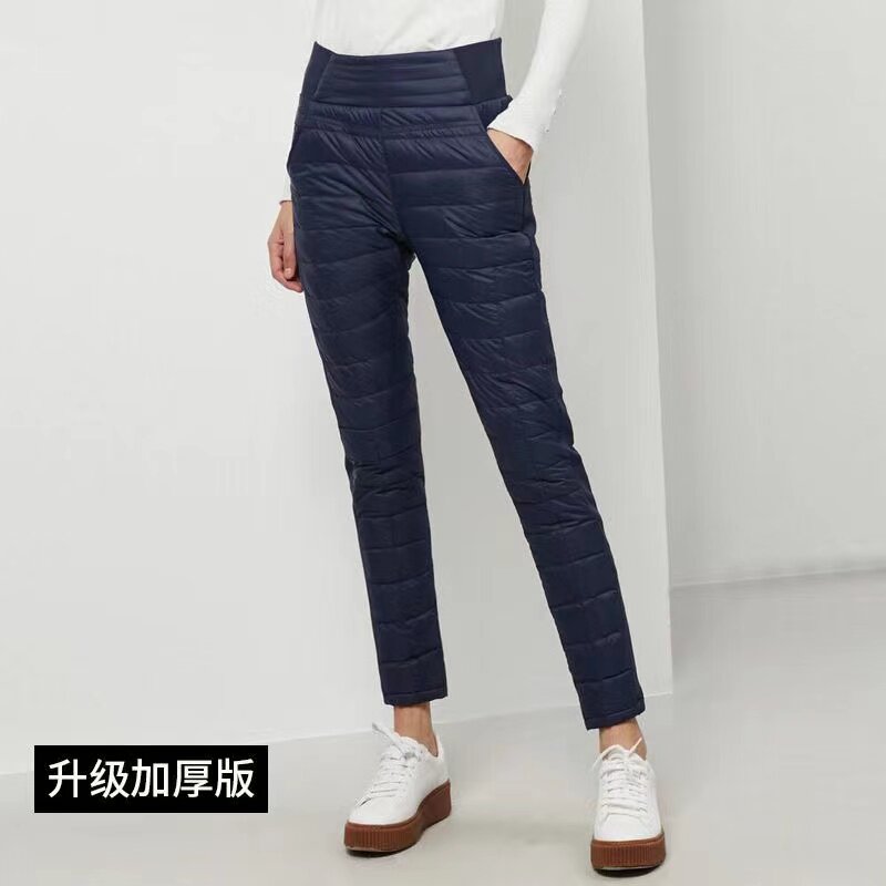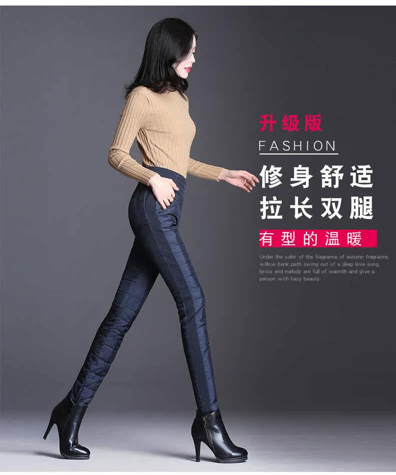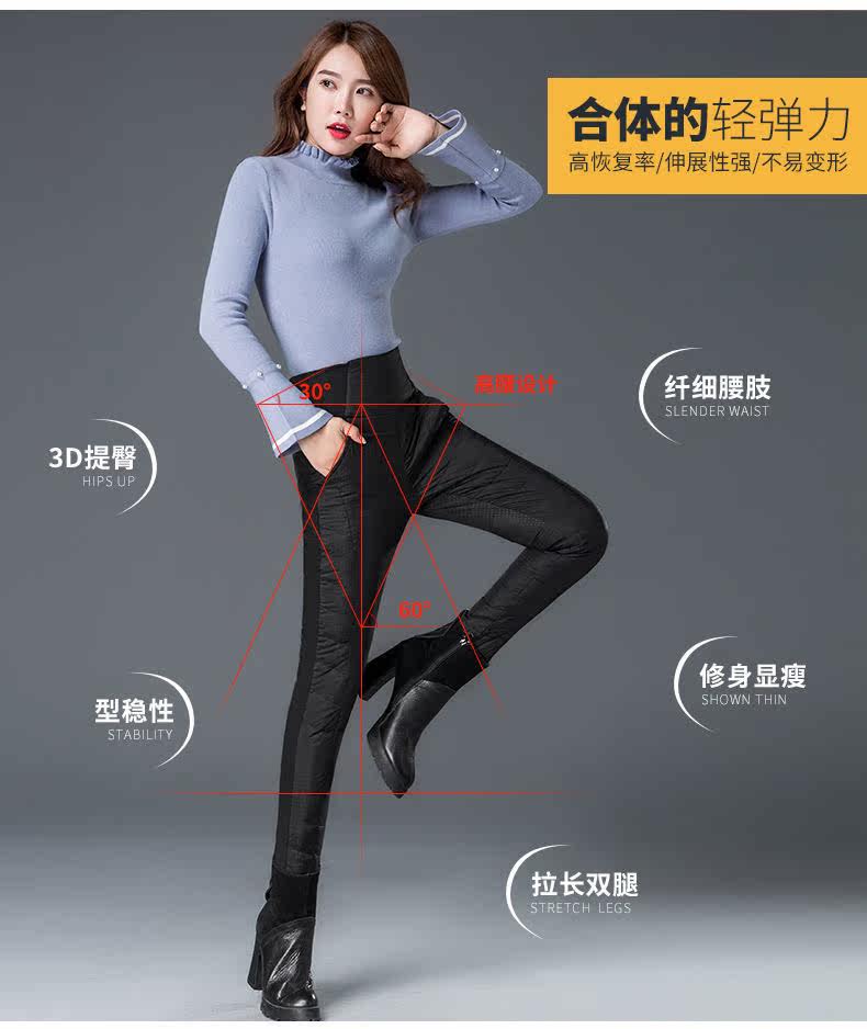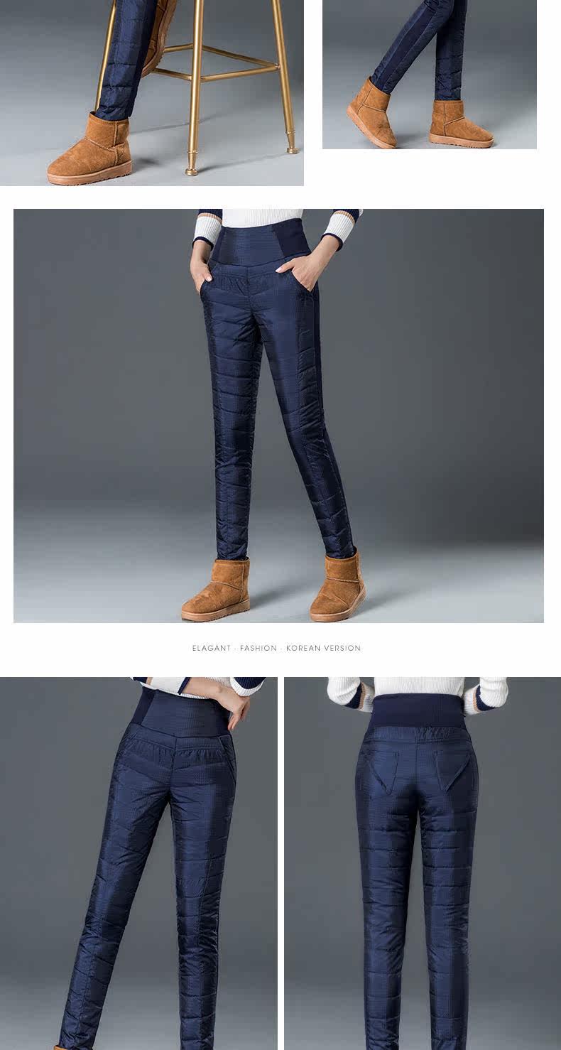 Штаны с пухом, бархатный удерживающий тепло карандаш, высокая талия, увеличенная толщина, по фигуре, большой размер, утиный пух, в корейском стиле