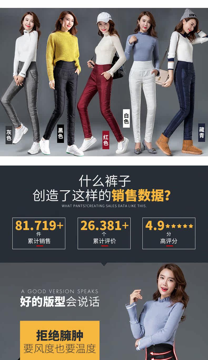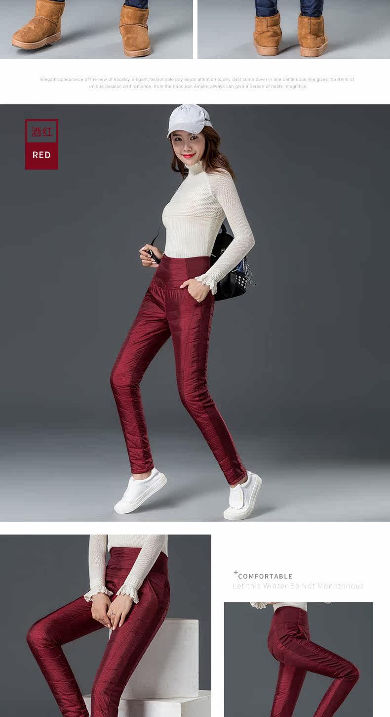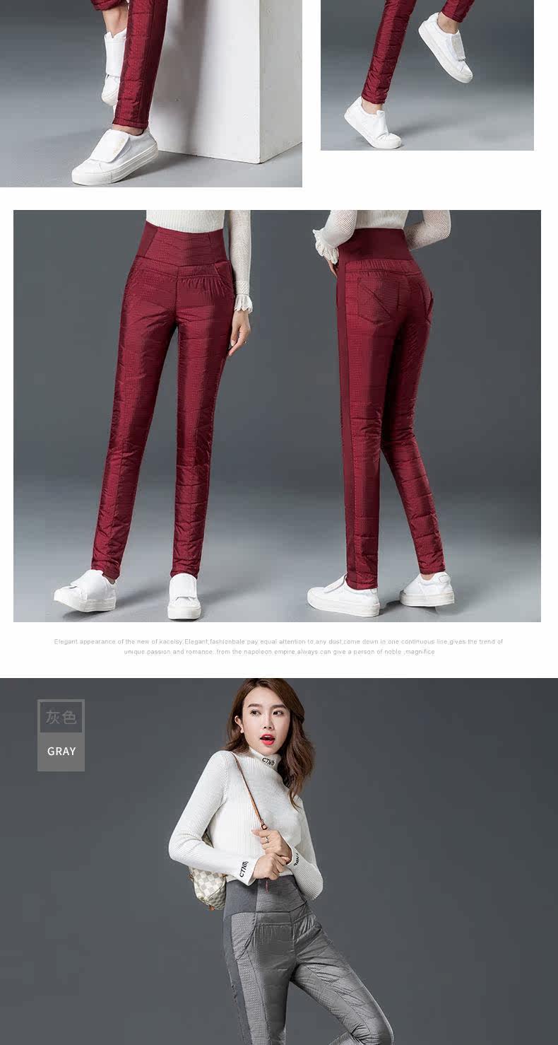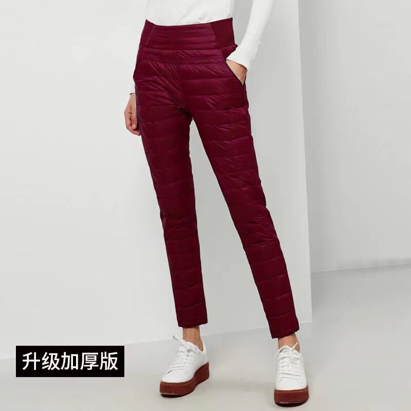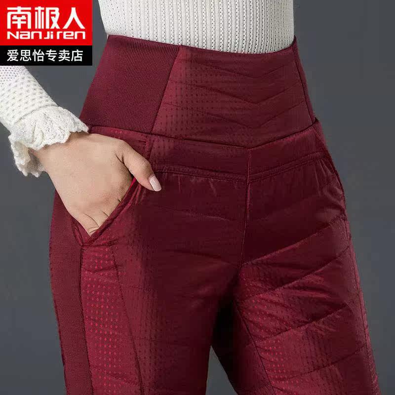 Штаны с пухом, бархатный удерживающий тепло карандаш, высокая талия, увеличенная толщина, по фигуре, большой размер, утиный пух, в корейском стиле