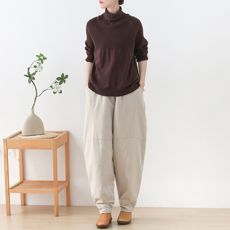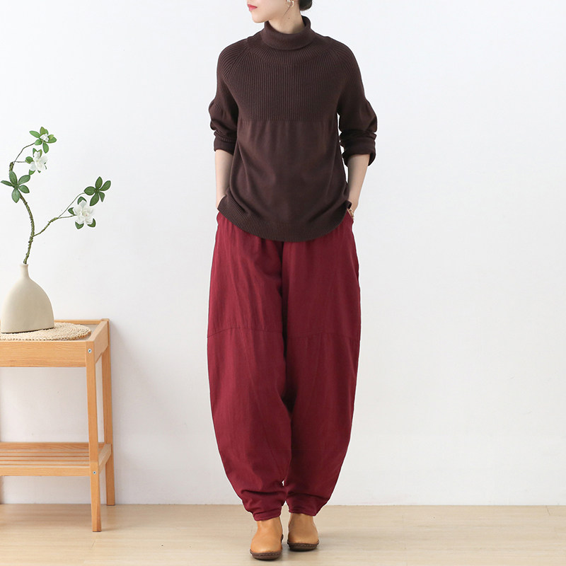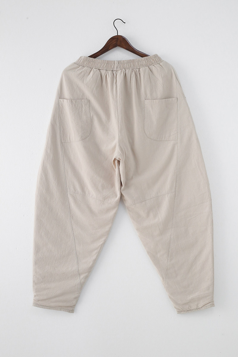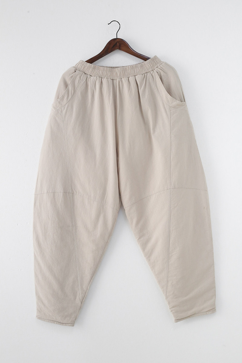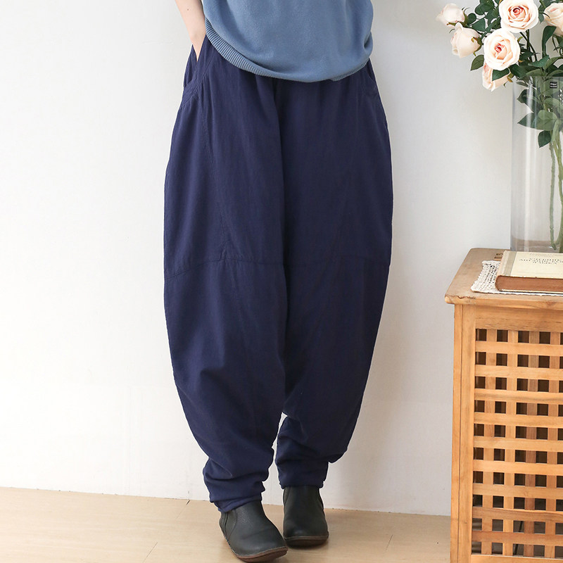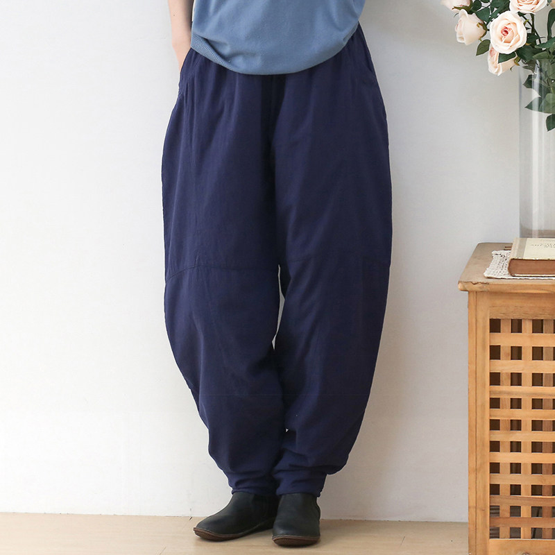 Зимние стеганые штаны, фонарь, высокая талия, увеличенная толщина, из хлопка и льна, большой размер