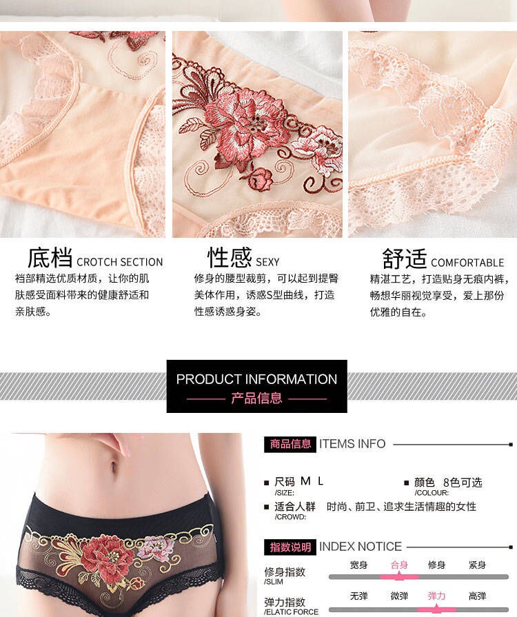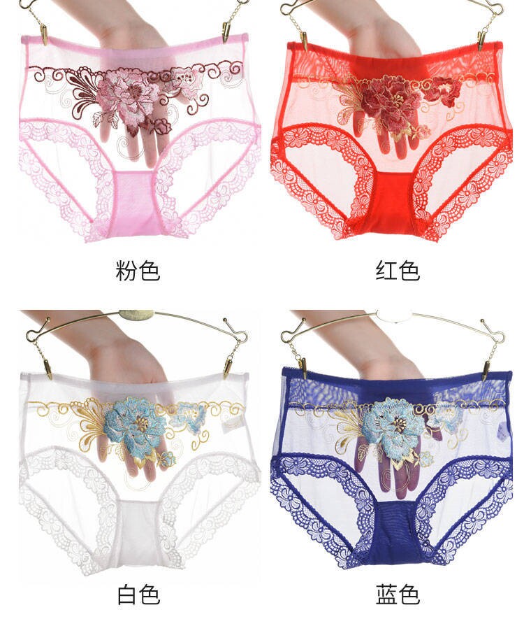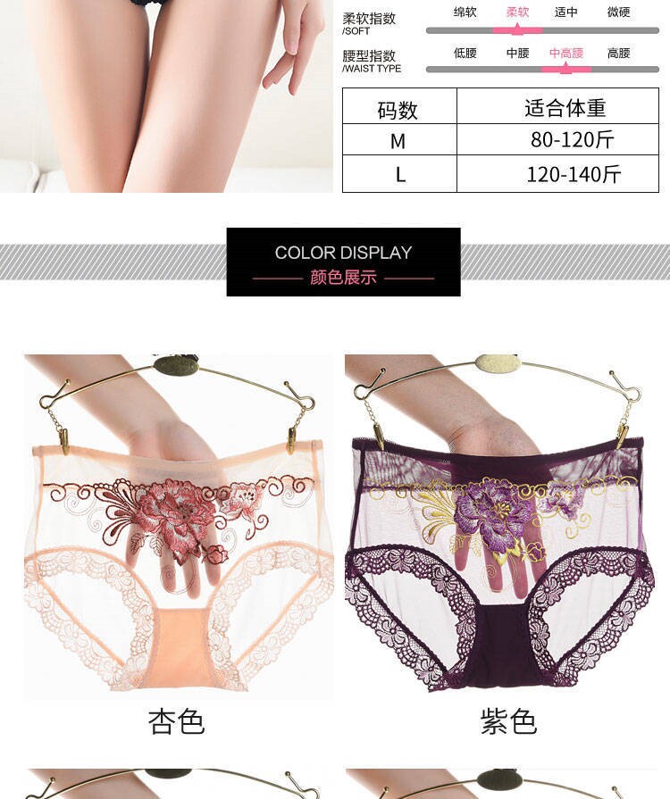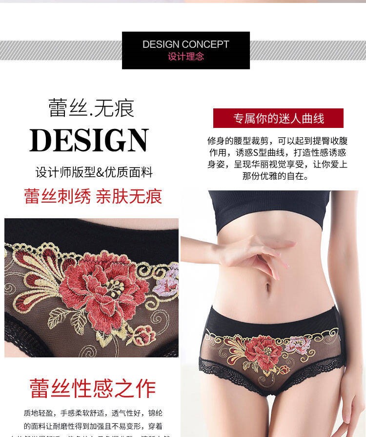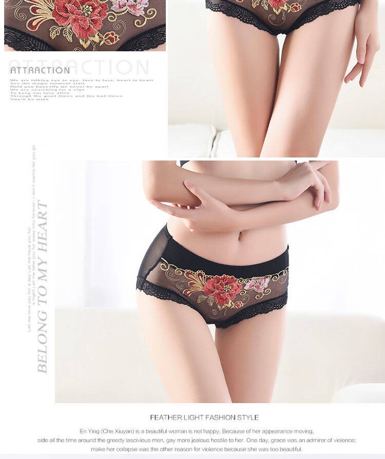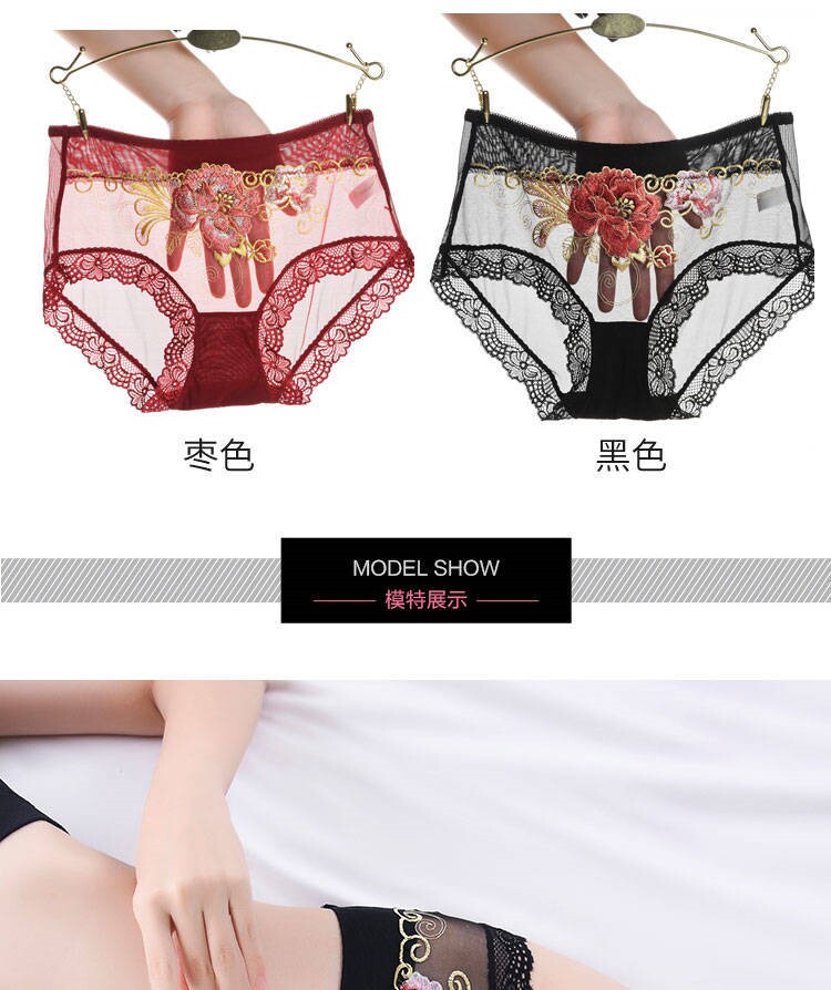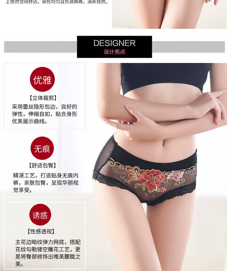 Сексуальные трусы, кружевные штаны, вышивка, 3 шт., с вышивкой, средняя посадка, большой размер