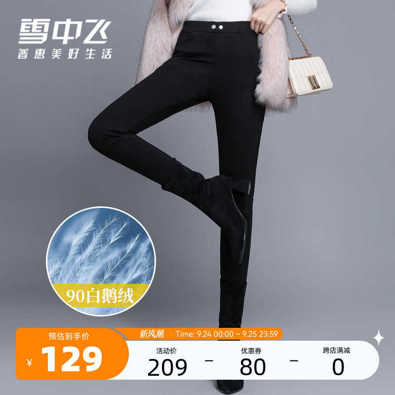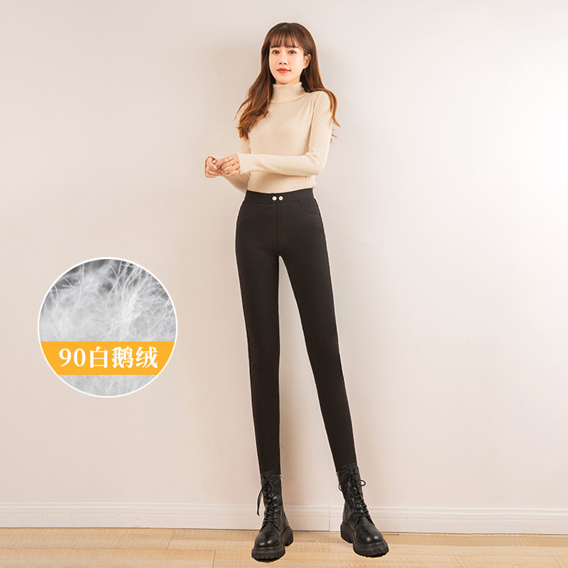 Демисезонные бархатные приталенные зимние штаны с пухом, высокая талия, увеличенная толщина, гусиный пух