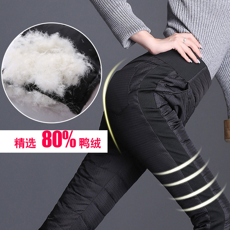 Модные удерживающие тепло зимние элитные бархатные штаны с пухом, высокая талия, подходят для подростков, утиный пух