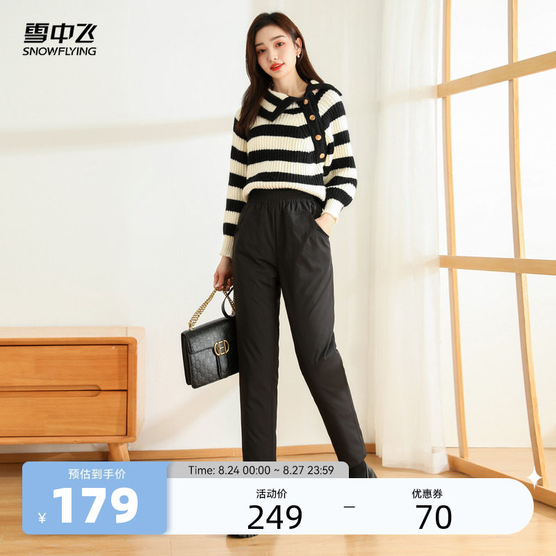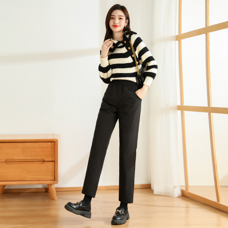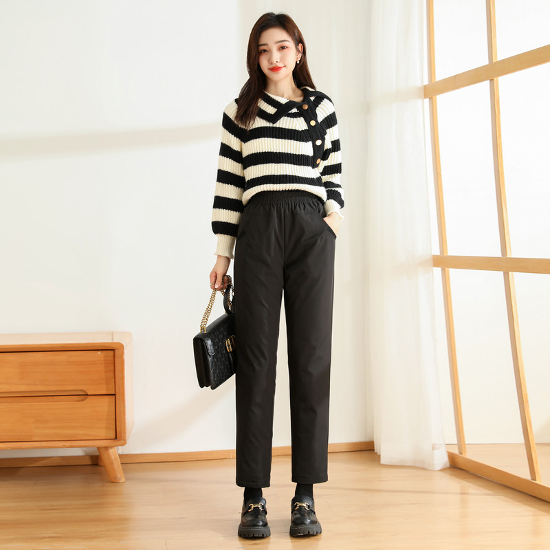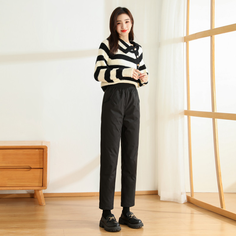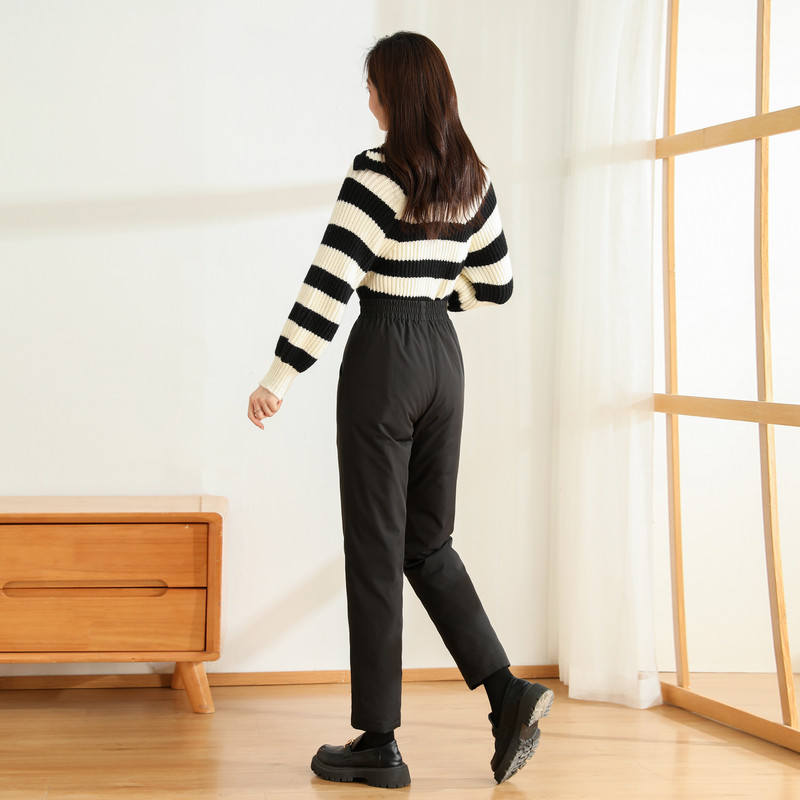 Демисезонные модные удерживающие тепло черные штаны с пухом, свободный прямой крой, эластичная талия