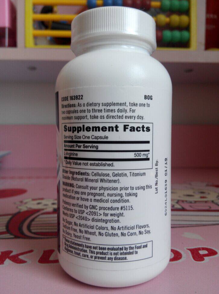 Настоящий импортированный из США GNC L-аргинин 500 мг 90 капсул, бесплатная доставка