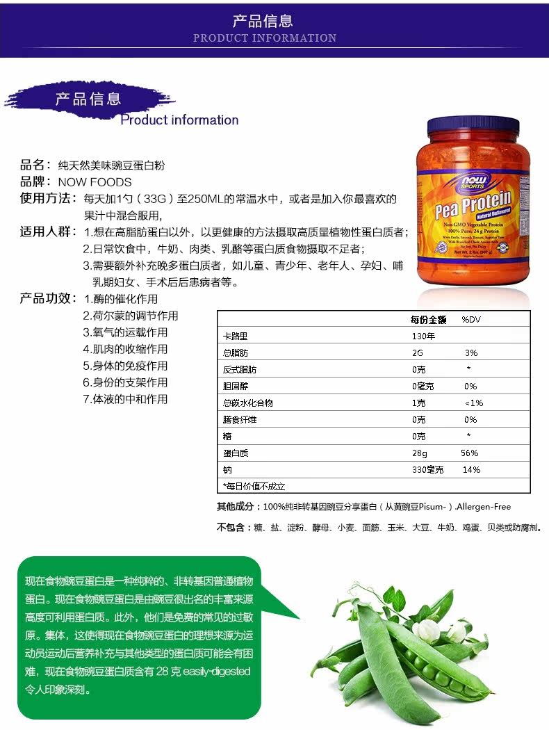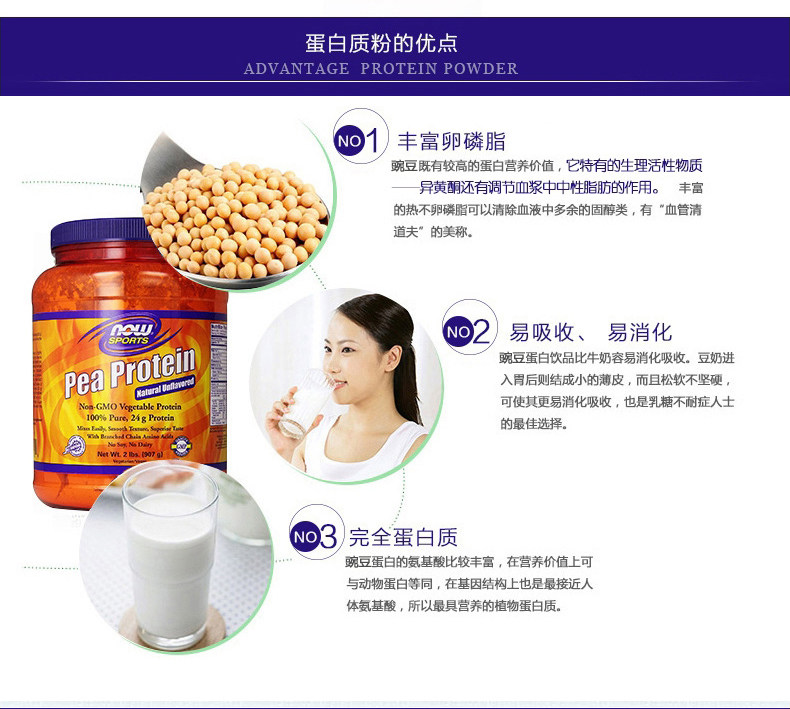 Nowfoods Импортировал натуральный горох Plain Plant Powder 907G в дополнение к разнообразным питательной энергии