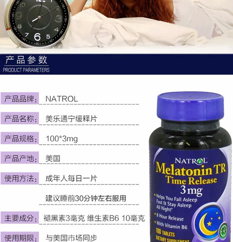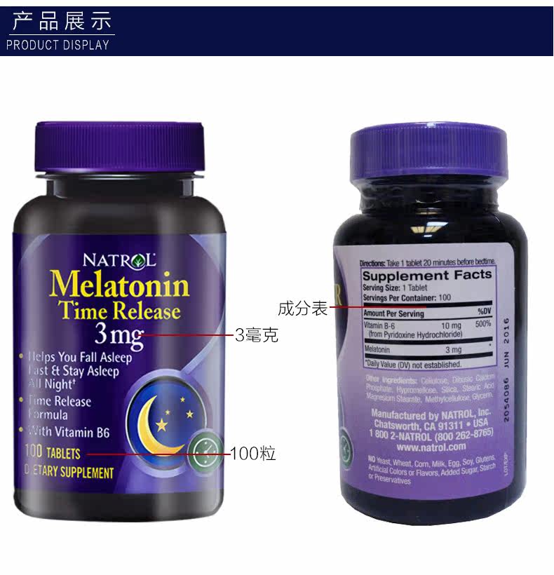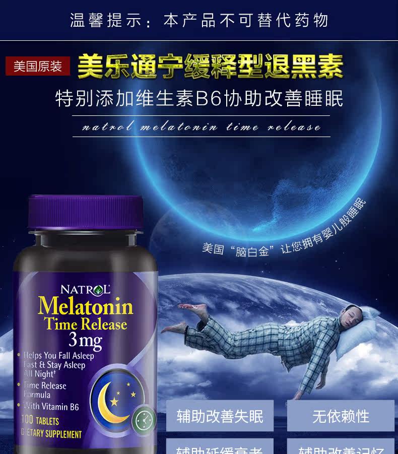 Натрол мелатонин мелатонин Таблетки спят 3 мг мелатонинг меланин витамин В6 Соединенные Штаты