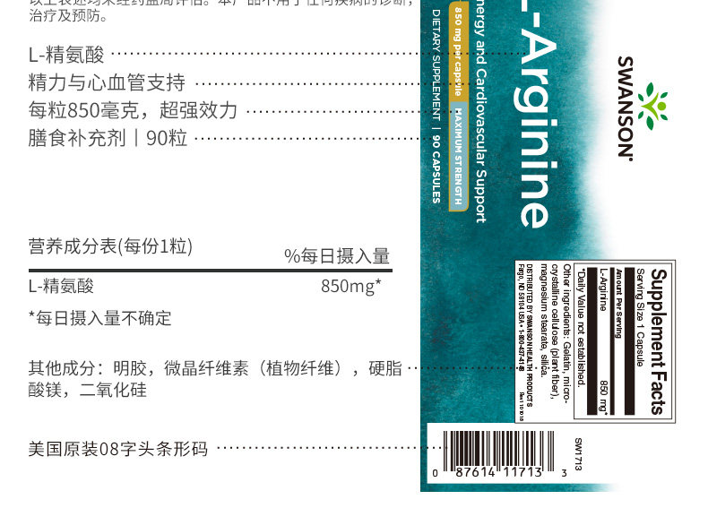 Swanson Swansen L-L-L-Carobinine мужская фитнеса капсула оксида азота Zinc SW1713