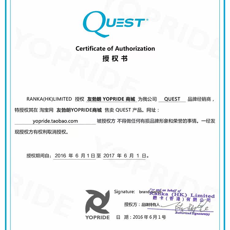 Продавец:友勃朗yopride商城