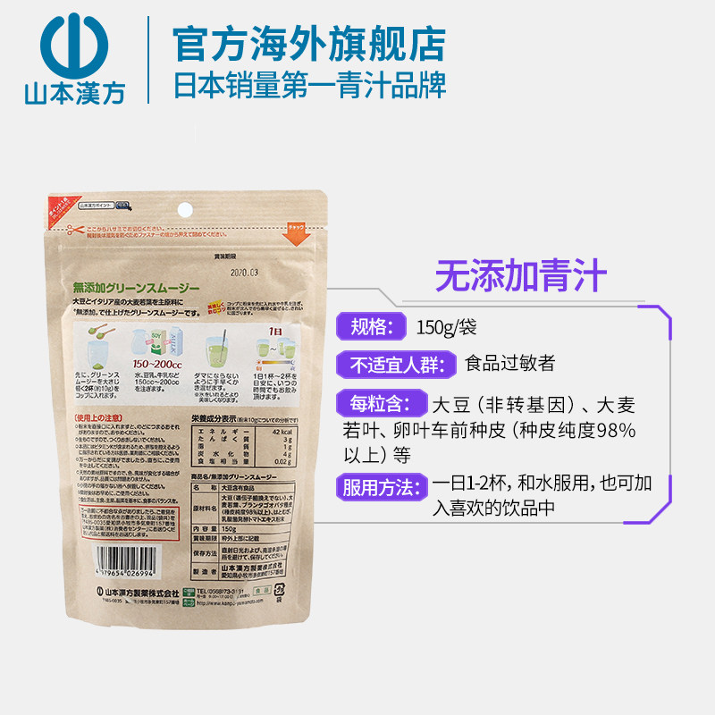 山本汉方 Япония импортируется без добавления зеленого молока Бывшие пищевые волокно -токсичные зеленые соки. 150 г/сумка