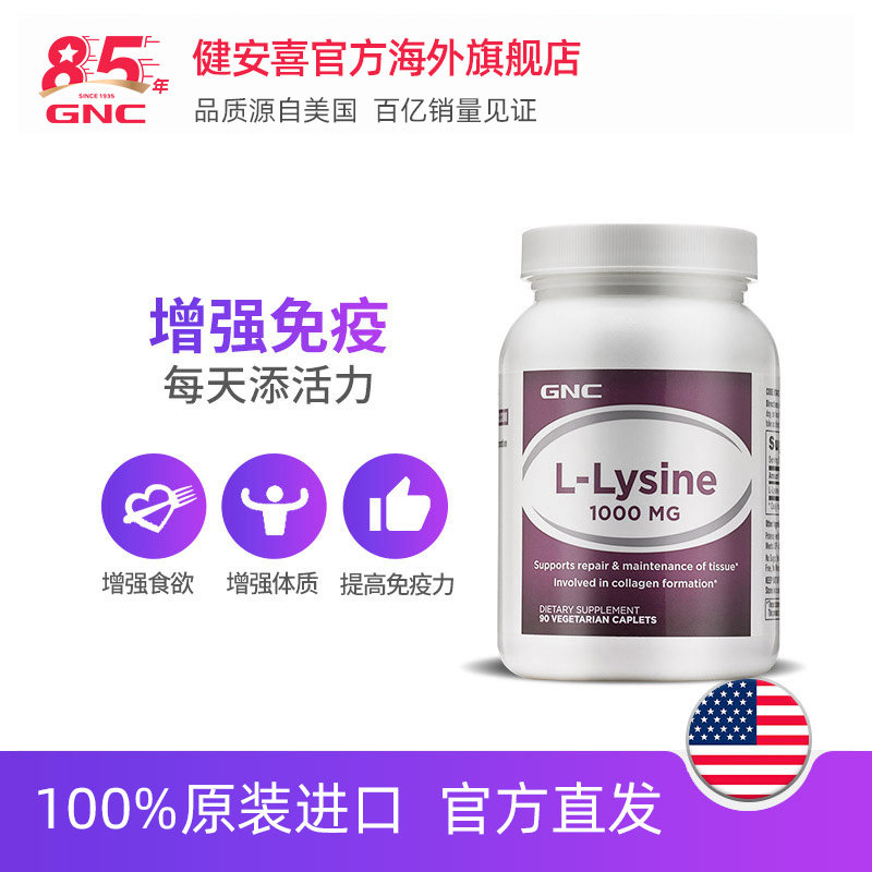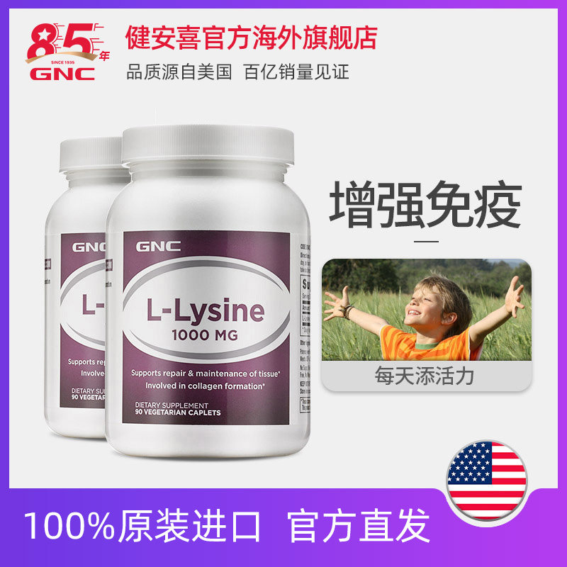 GNC Jiananxi Lysine Tablets 1000 мг*90 таблетки 2 бутылки для повышения физической подготовки и улучшения подростков мозга