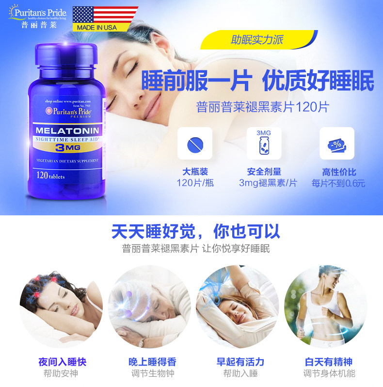 Pribula Американские взрослые таблетки мелатонина Сонные спящие таблетки сон ногами меланин 3 мг*120 таблетки*2 бутылки