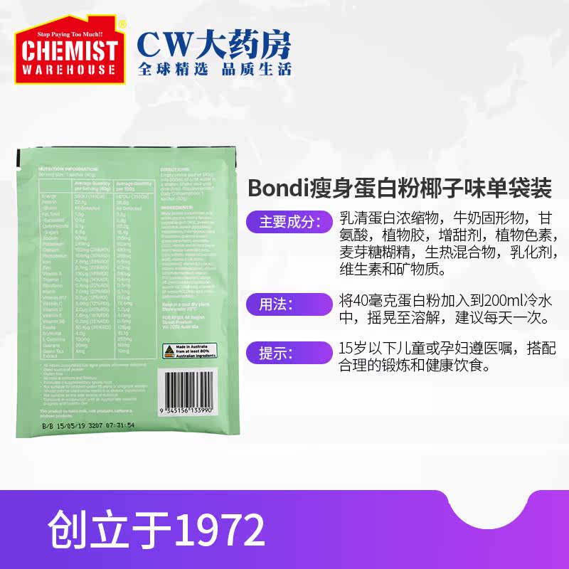 Бонди похудение протеинового порошка подготовки мышц Улучшение кокосового аромата. Одиночная сумка 40G Австралийская CW