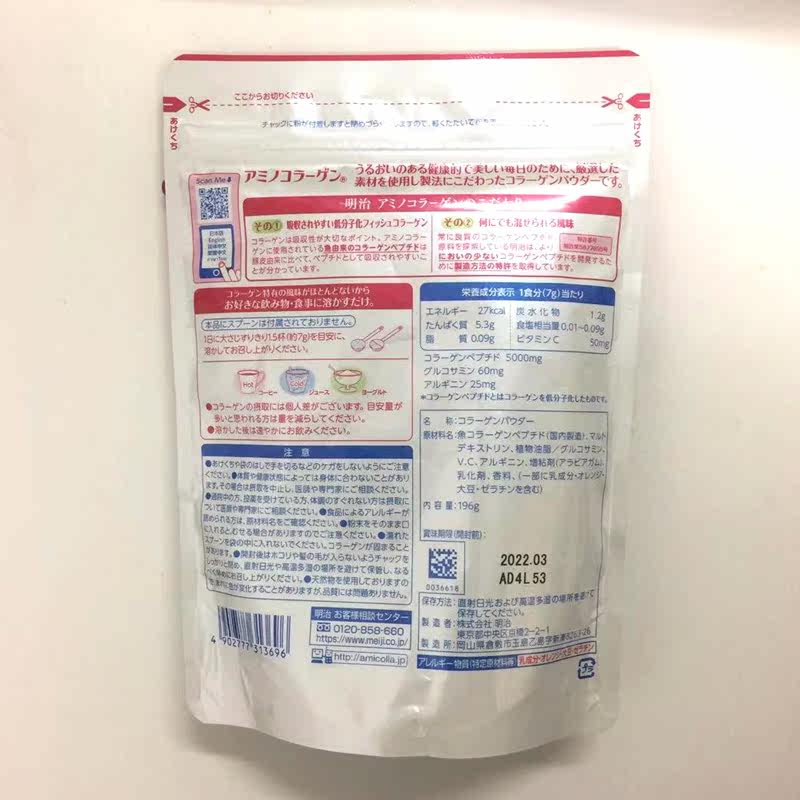 [Meiji胶原蛋白粉每天一勺(约7克),含5000mg胶原蛋白,氨基]