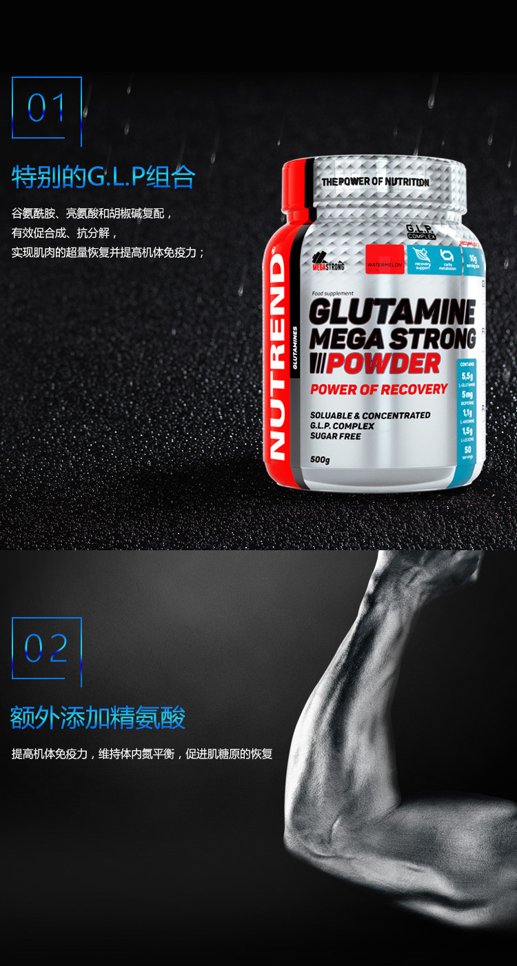 Nutrlence Noteranda усилила глютамин 500 грамм разветвленной цепной аминокислотной гибридной цепи BCAA.