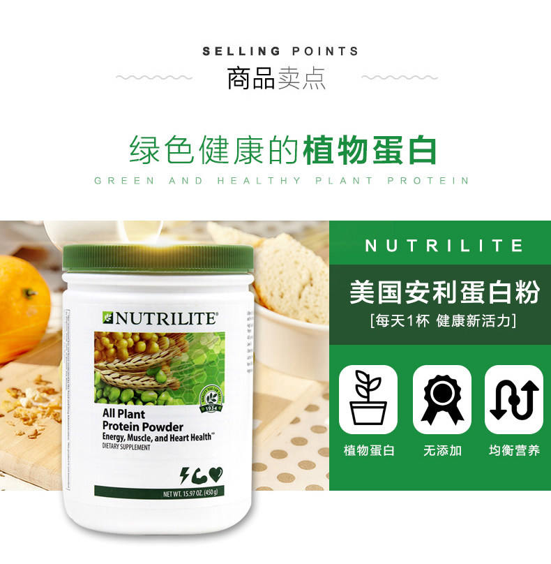 Amway Nutrilite Protein Порошковое усиление мышц взрослые средние и пожилые активированные импортируемые протеиновые порошок 450 г*2
