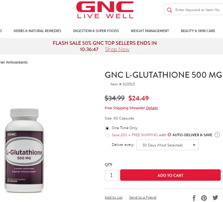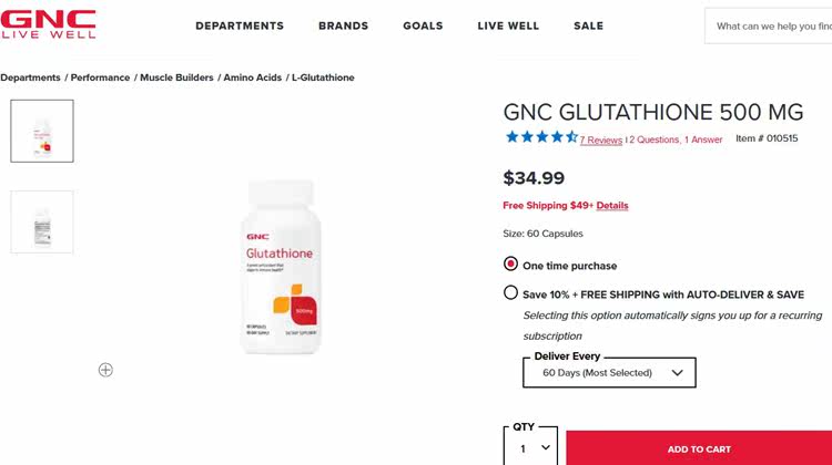 【Английское название】 GNC L-Glutathione 500 мг
