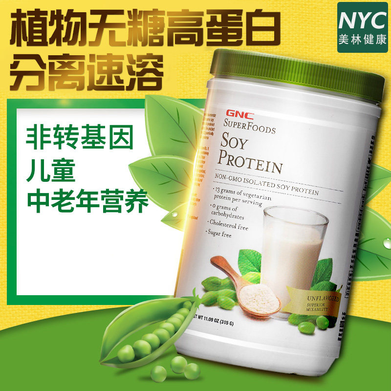 Американский GNC соевый соевый соевый соевый порошок питание порошок порошок сахарного протеина протеина 315 г детей для взрослых средних и пожилых людей и пожилых людей