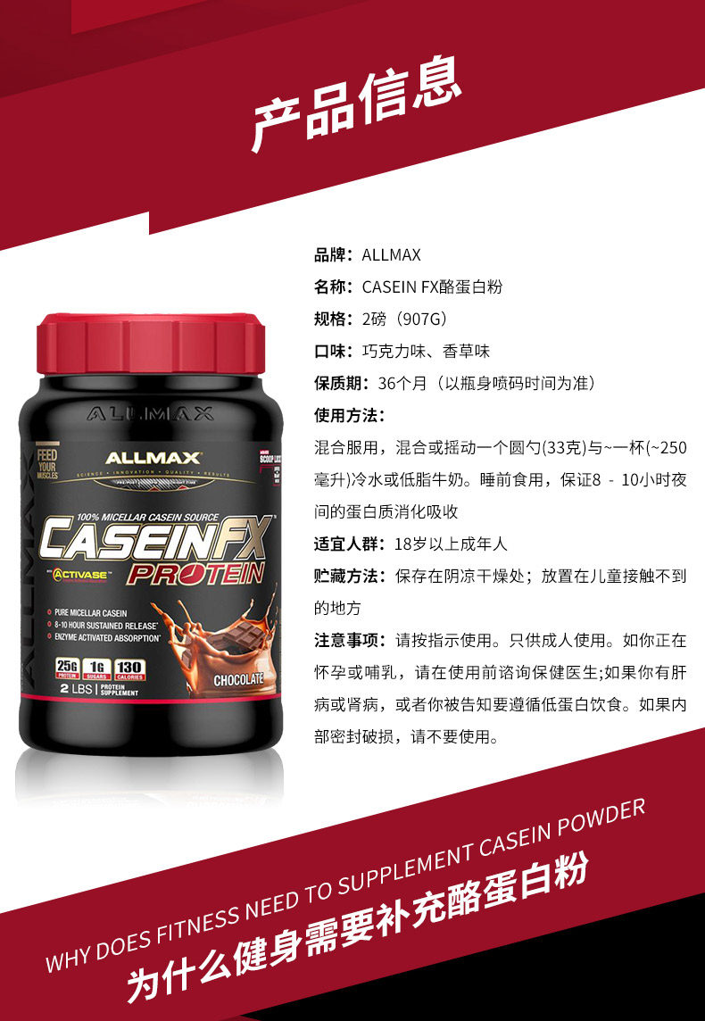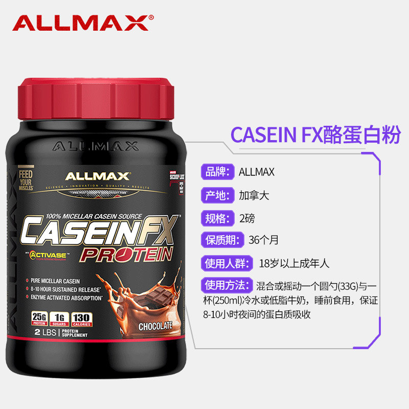 ALLMAX Медленно -обратный порошок казеина, вес мышечного порошка, порошок для молока -клейр, без порошка, не -мпсон 2 фунта